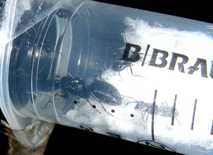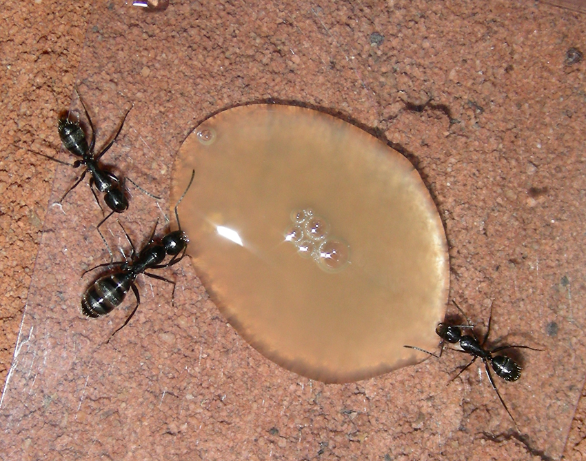 28.08.2008 Hab heute draußen, ausserhalb vom Formikarium eine kleine flinke Camponotus laufen gesehen. Die tote Gelse von gestern haben sie genommen - sowie auch etwas Honigwasser - sind meistens eher Nachtaktiv zur Zeit (wohl sicherer für sie). Kleine Kugelspinnen mögen sie nicht - gab ihnen heute eine tote Essigfliege sowie wieder Honigwasser in die Futterspritze.
