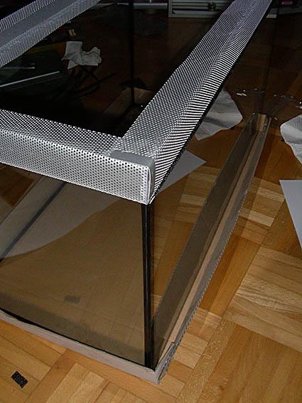 Abdeckung: massiv aus Aluminium mit Alugitter abgedichtet
