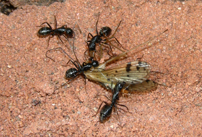5. Die tote Fliege wird ins Nest getragen.