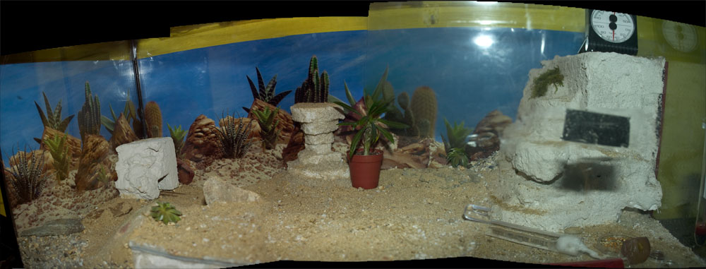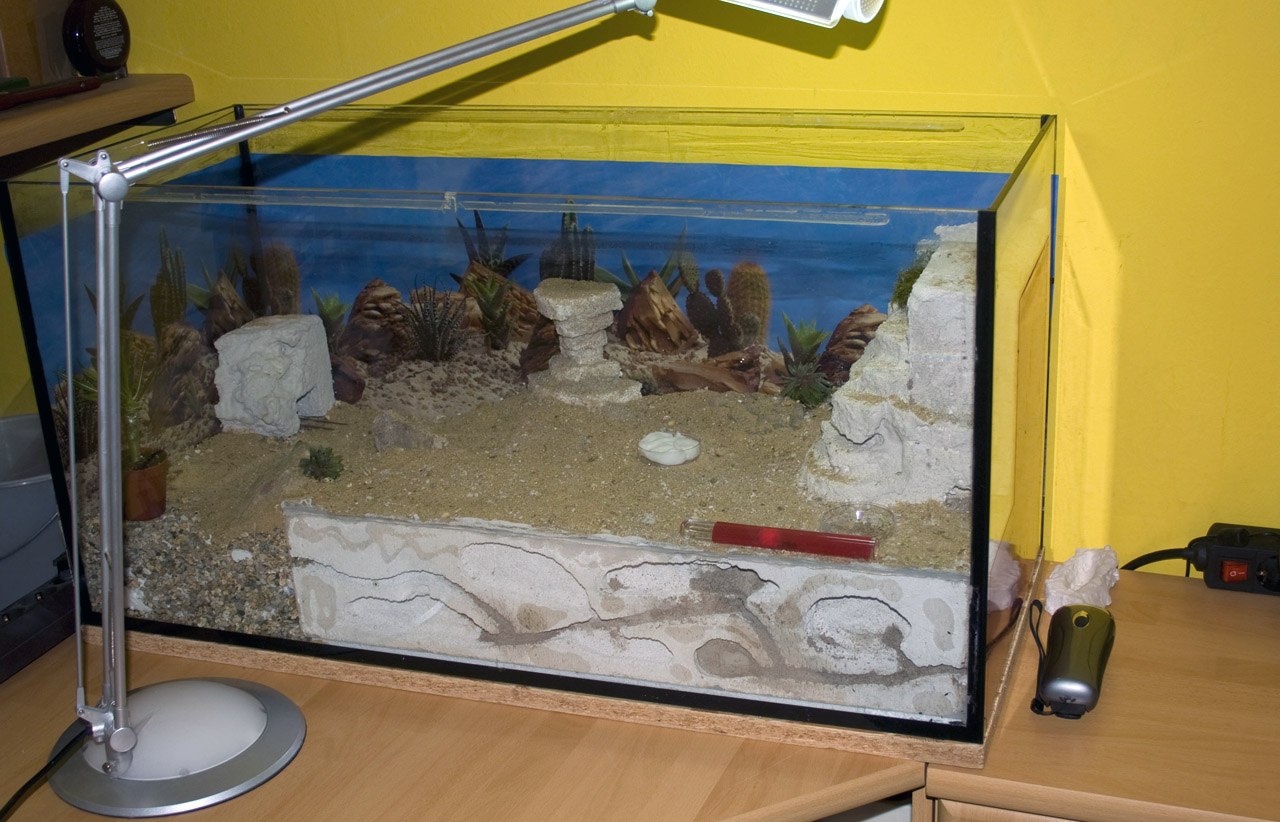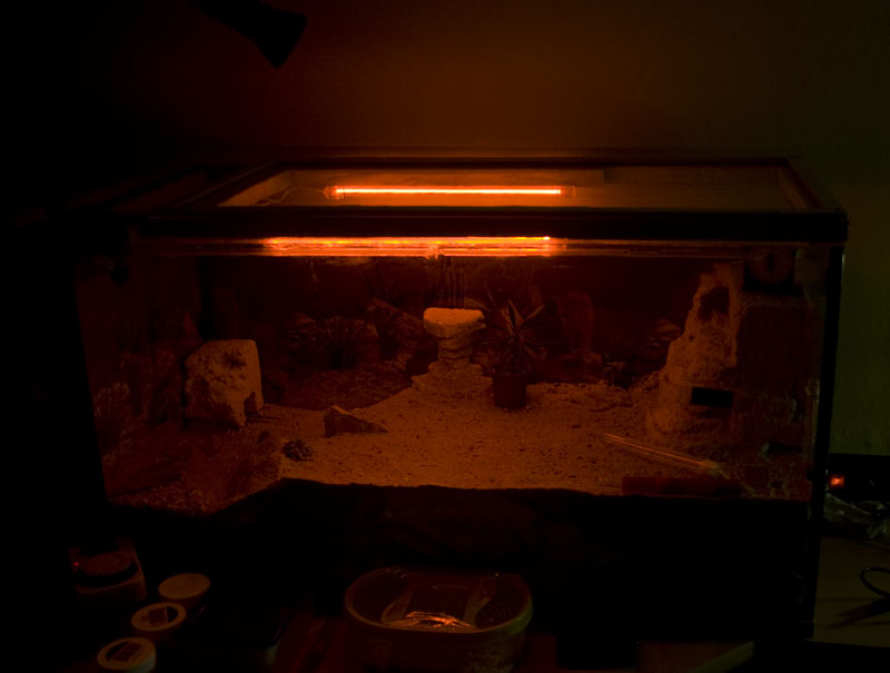 Ich hab jetzt auch erstmal eine andere Lampe genommen, die direkt ans Nest scheint und es auch etwas erwärmt, da ich für die Arena leider noch keine Lampe mit Leuchtmittel gefunden habe, die alles mit einem schönen gelblichen Licht ausleuchtet.