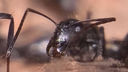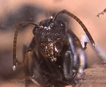 Im Vergleich zum Rest des Körpers ist der Kopf sehr groĂ und auch die Mandibeln erscheinen mir massiver, wobei ich aber glaube das die Augen genausogroĂ sind wie bei den Minor-Arbeiterinnen. Der Kopf ist noch recht hell, zumindest der vordere Bereich, daher denke ich, dass sie erst in den letzten Tagen geschlĂŒpft ist und sich innerhalb der nĂ€chsten Woche die sonst schwarze FĂ€rbung dieser Art vollstĂ€ndig ausprĂ€gen wird. (oder gibt es dazu andere Erfahrungswerte?)