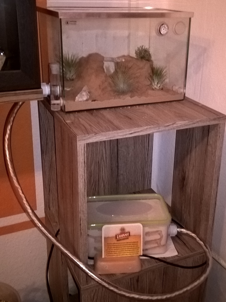 Was sich geĂ€ndert hat, ist die Beheizung. Das Heizkabel ist aus und weder Arena noch RG werden seit dem Wochenende beheizt. Stattdessen habe ich nun eine Heizfolie (4W) am Gipsnest montiert. Genauer gesagt klebt diese Folie von unten an einem Bilderrahmenglas welches ich dafĂŒr zweckentfremdet habe, auf dem Glas steht das Nest und die Folie deckt in etwa 1/3 der GrundflĂ€che des Nestes ab. Das Glas liegt auf 4 Abstandshaltern und somit ca. 1cm ĂŒber dem Regalbrett. Die Folie wird durch eine digitale Zeitschaltuhr im Stundentakt ein und ausgeschaltet, ich werde aber vermutlich zu einem 30 Minutentakt ĂŒbergehen. Ich habe einen Testlauf unternommen bei dem ich den Temperaturverlauf geprĂŒft habe. Bleibt die Folie lĂ€ngere Zeit durchgehend angeschaltet wird es ab ca. 2h doch ordentlich heiĂ.