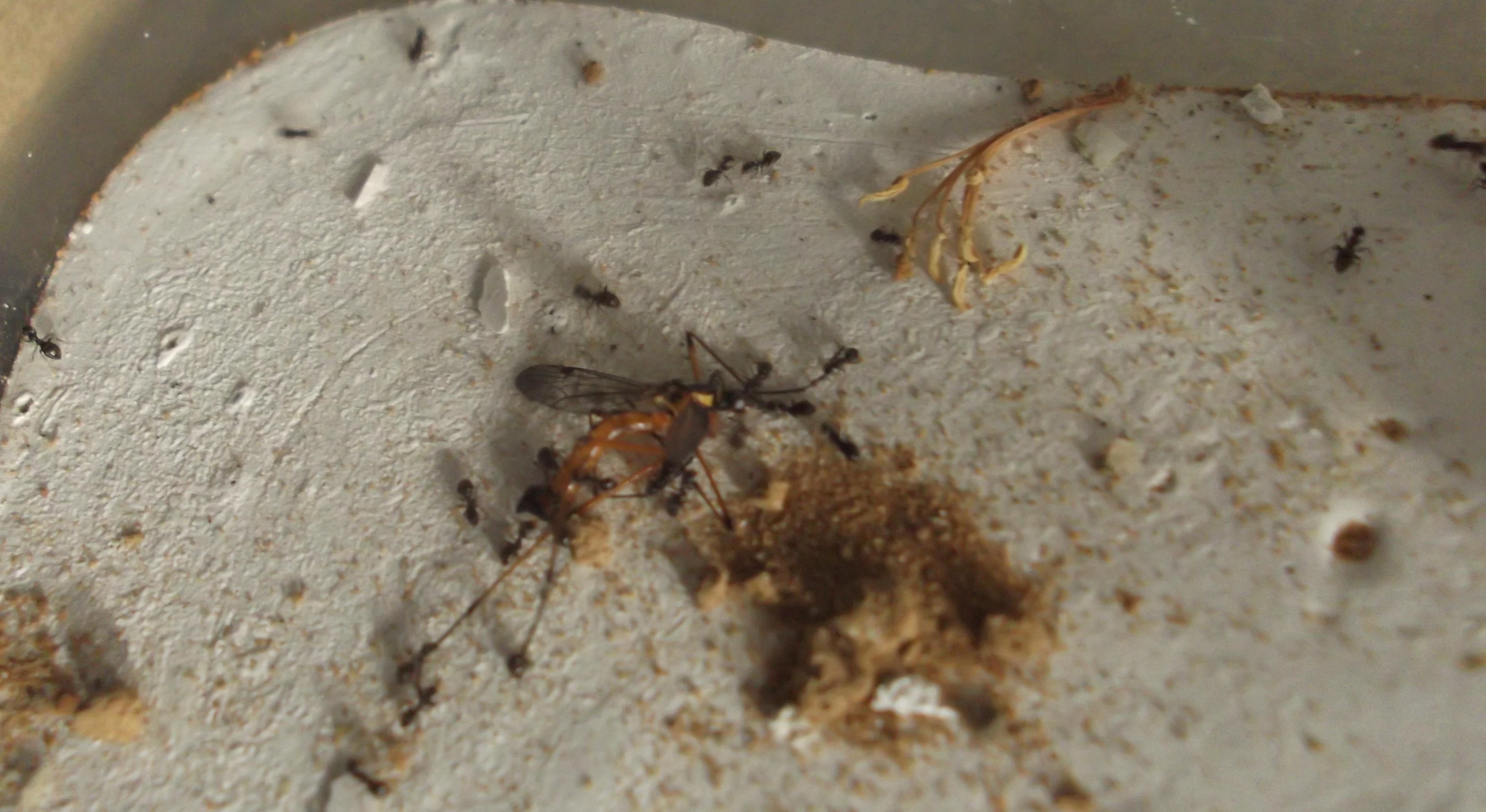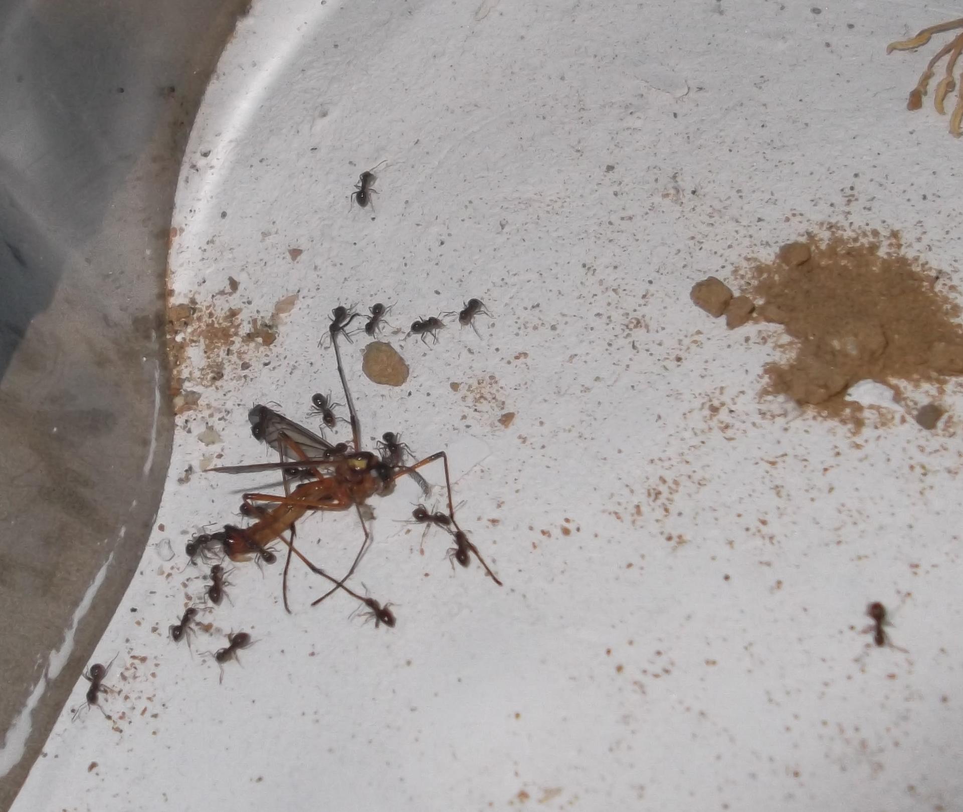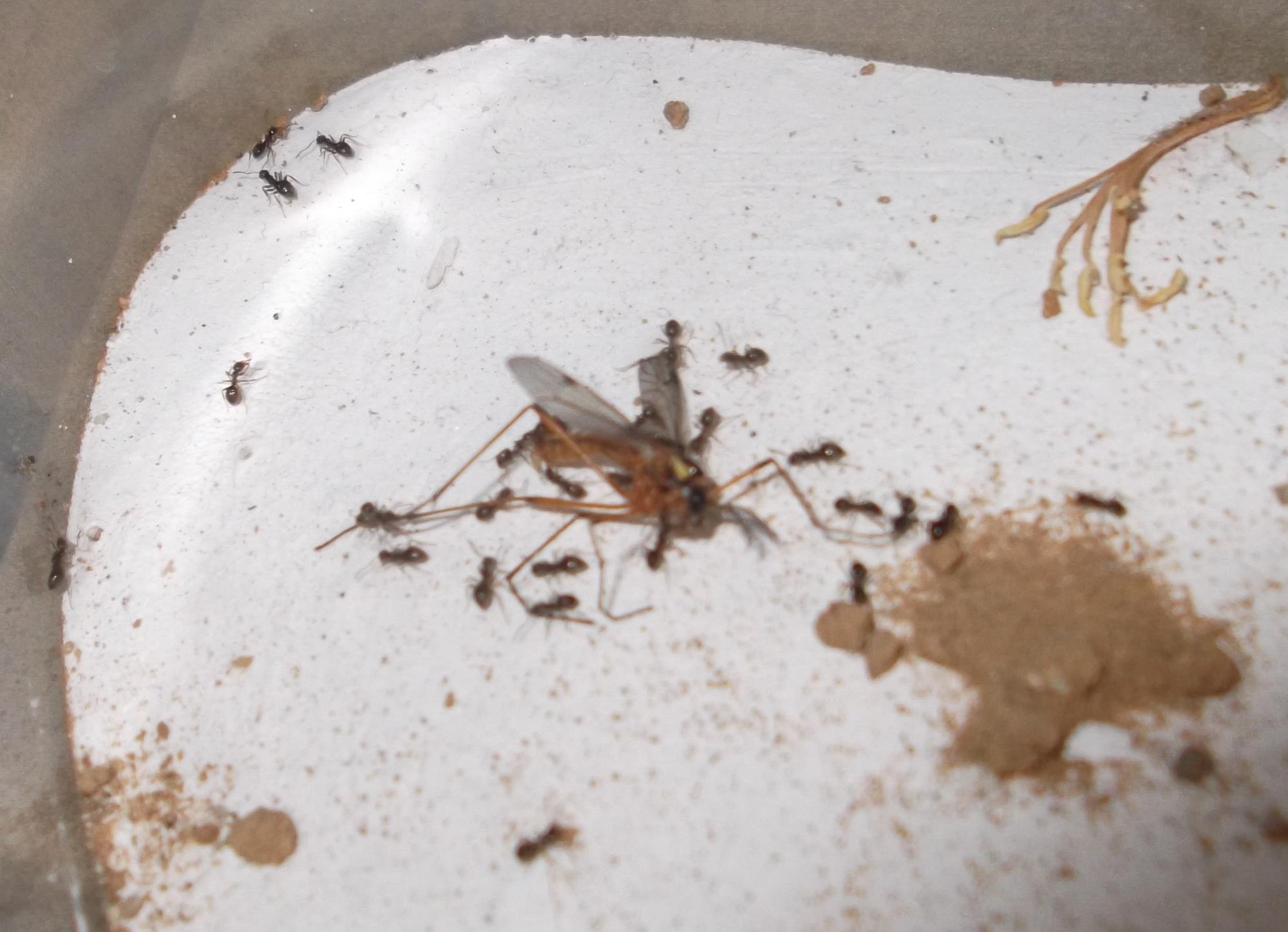 P.S. Immer wieder ist es lustig anzusehen, wie eine Arbeiterin ein - totes - Futtertier förmlich anspringt, wenn es darüber stolpert.