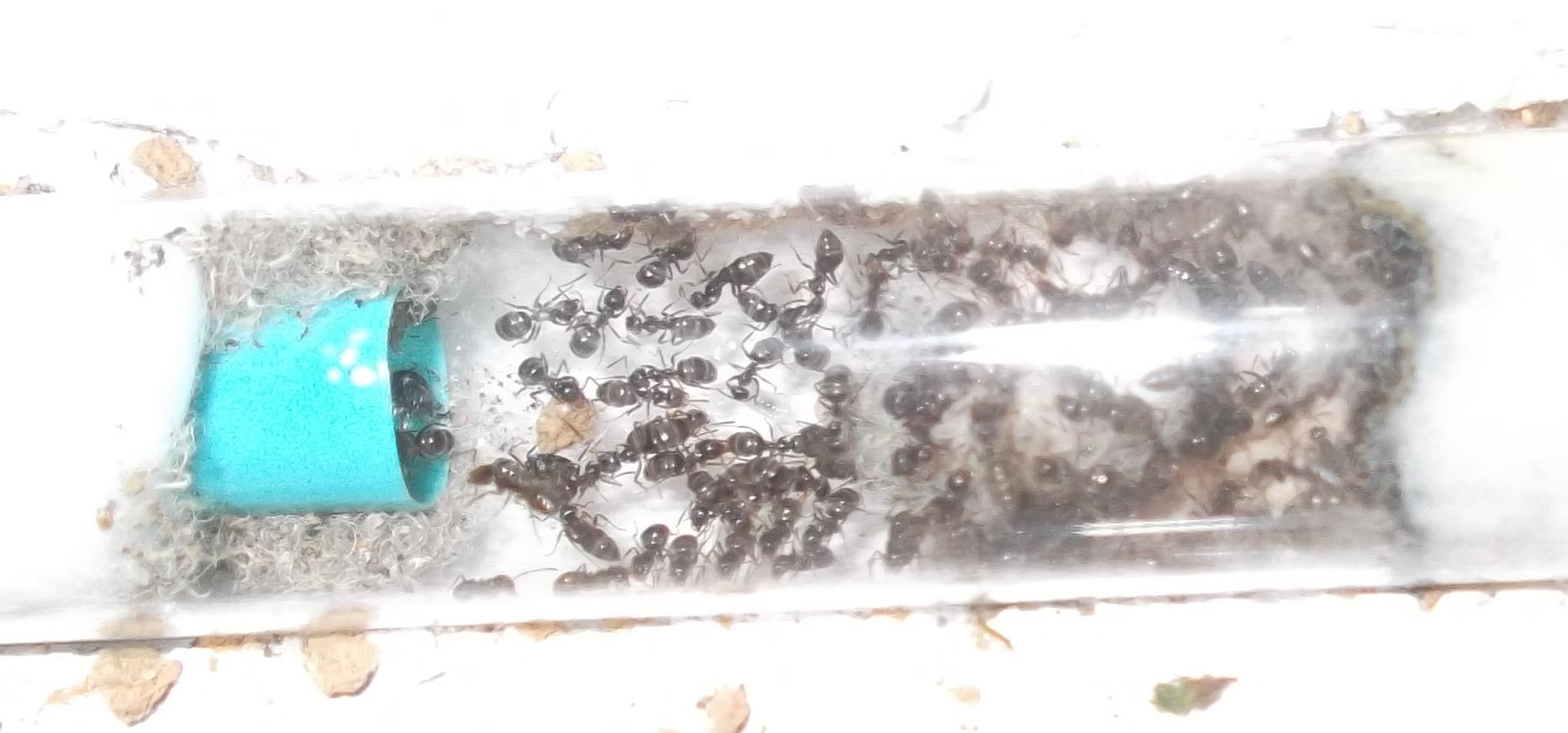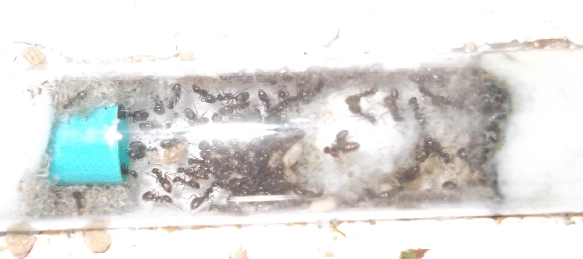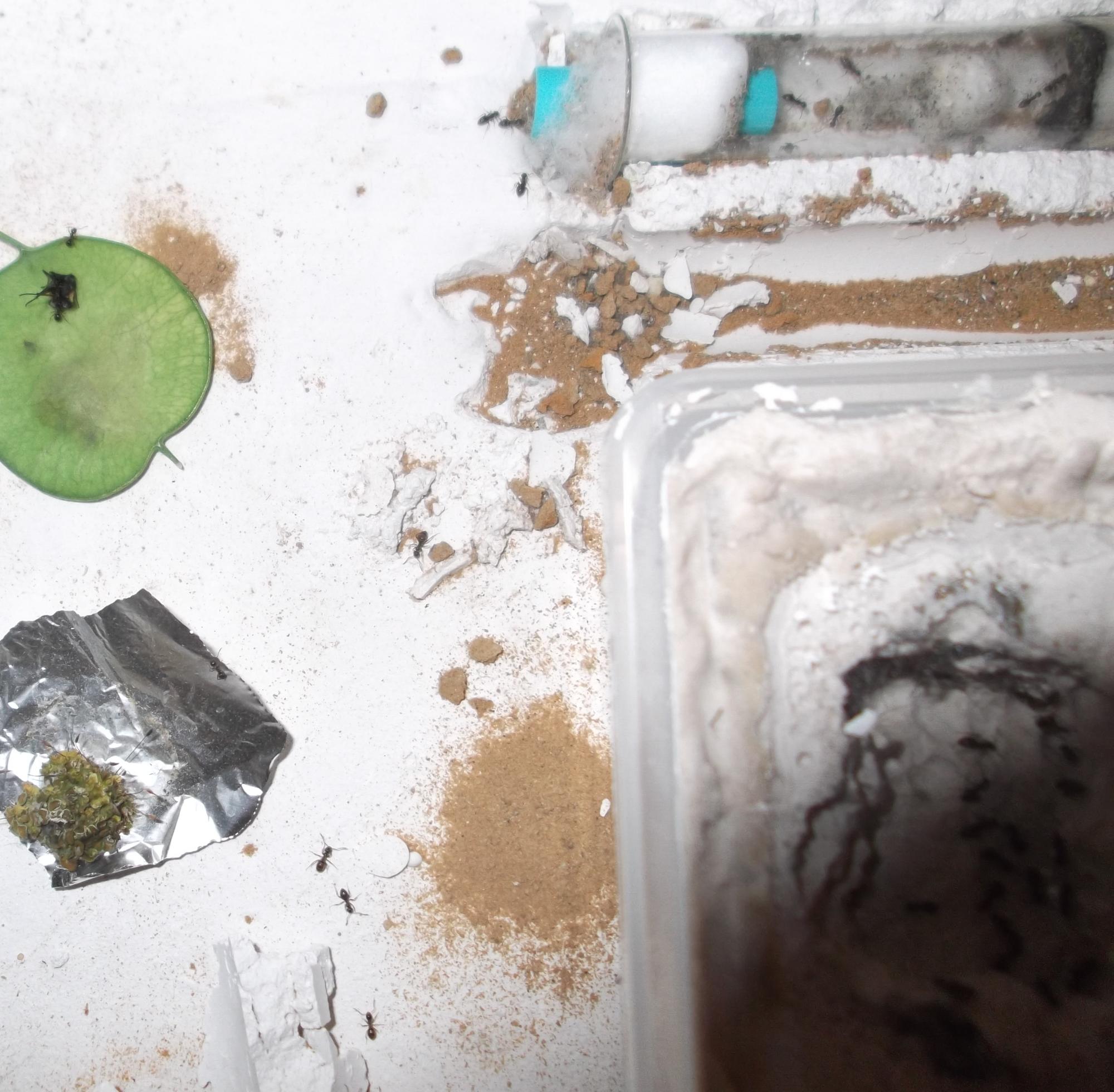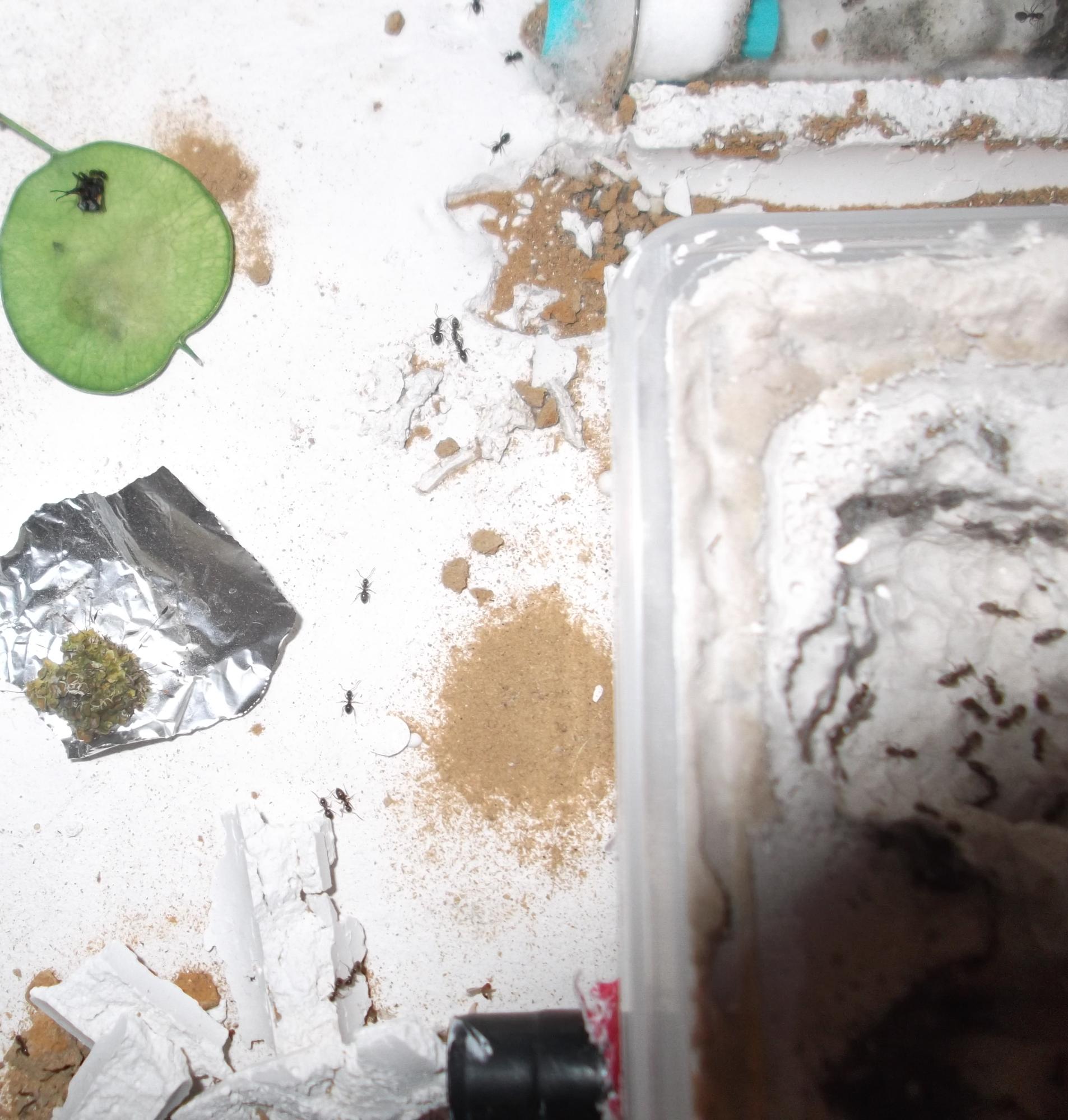 Die jüngere Kolonie wird nun nicht mehr von mir gehalten. Ärgerlich war, daß das RG, in dem ich die Ameisen verschickt hatte, während des Transports beschädigt wurde. Glücklicherweise war es trotzdem noch immer ausreichend fest verschlossen, sodaß es zu keinen Verlusten kam.