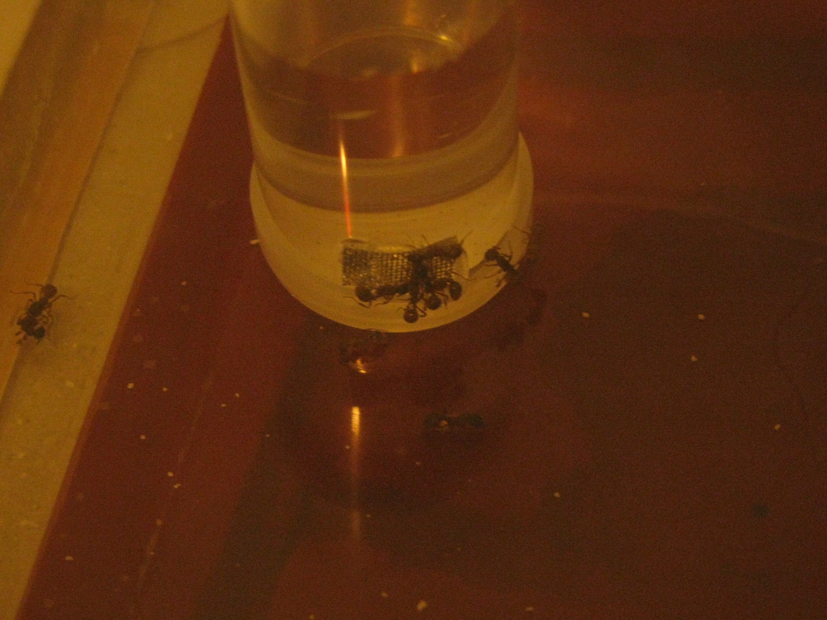 Momentan sind immer Ameisen an der Falltränke mit Zuckerwasser.