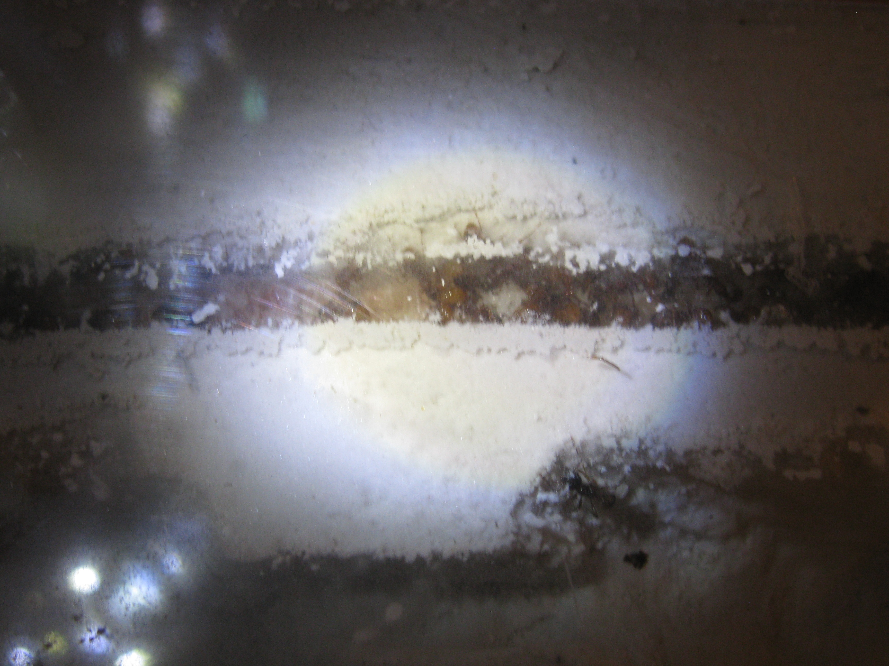 Auf 4 cm habe ich dickflüssiges Paraffinöl aufgetragen. Ich habe darauf geachtet das es nicht verlaufen kann indem ich mehrfach mit dem Taschentuch ringsum gegangen bin man erkennt eine dünne Schicht Paraffinöl.
