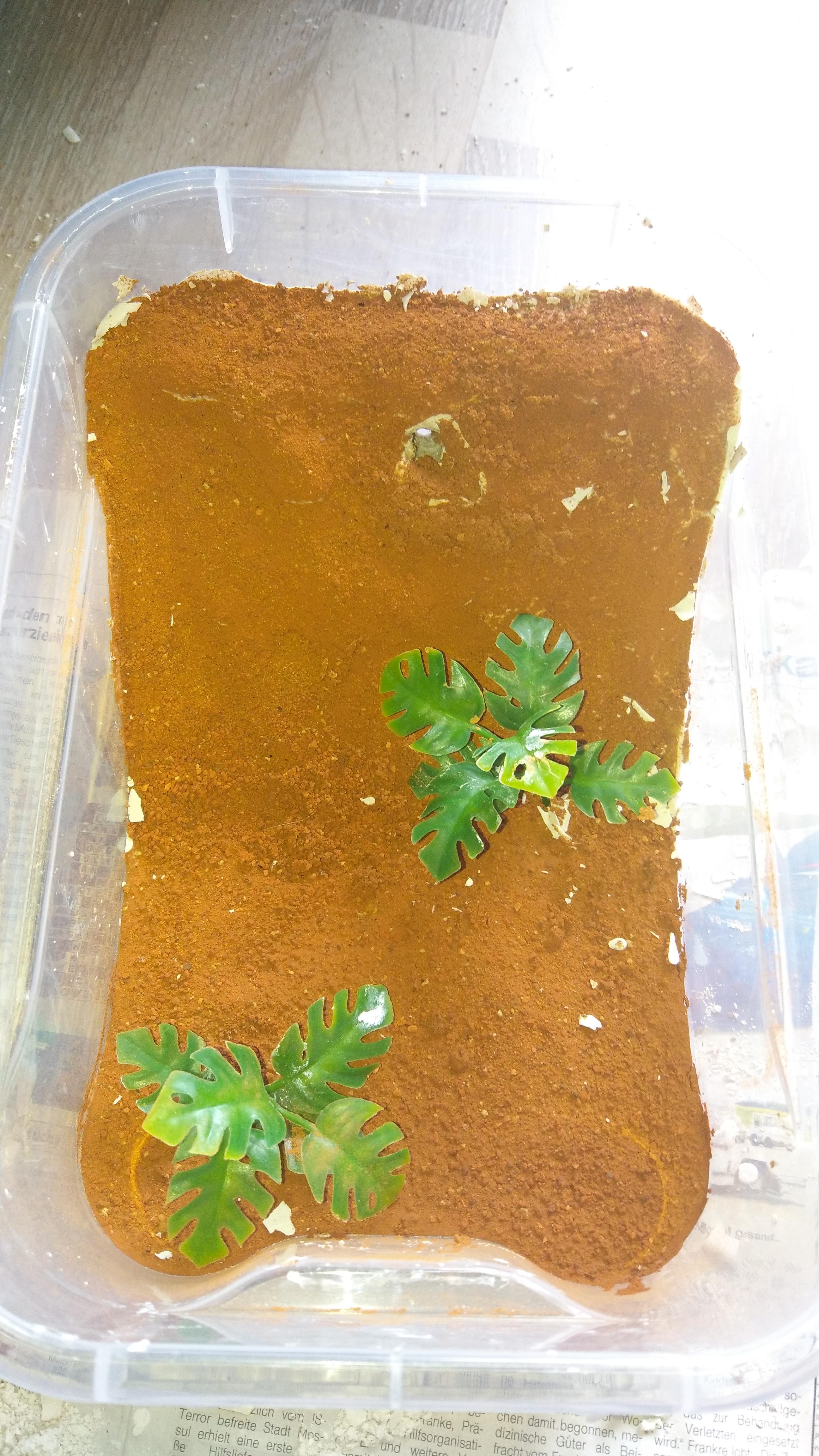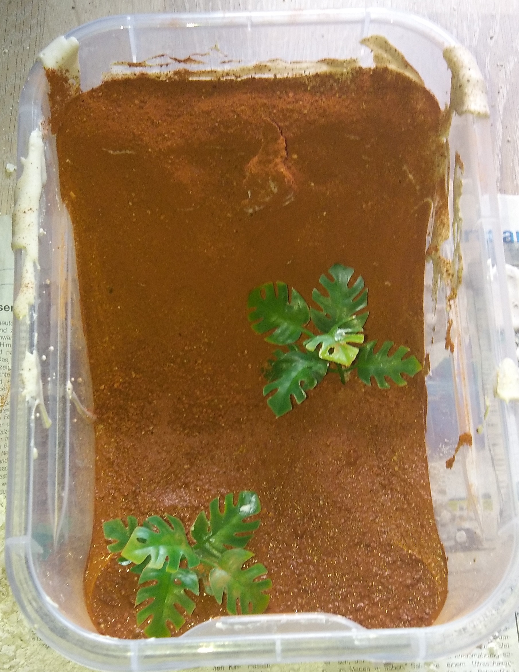 Des weiteren beabsichtige ich noch eine zusÀtzliche Schicht an Gips im gesamten Formicarium zu verteilen und zur optischen Verschönerung etwas roten Sand zu verteilen.