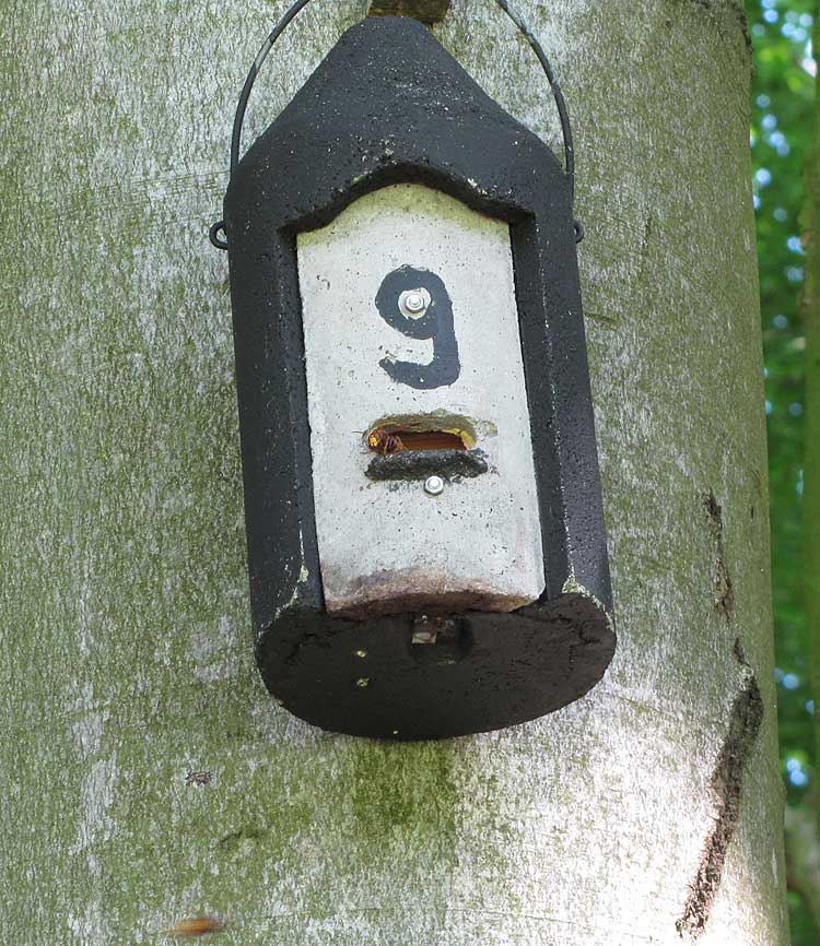 [font=Times New Roman]Das zweite Volk, am Bessunger Forsthaus bei Darmstadt, in einem Fledermauskasten, habe ich an demselben Tag, 17. 08., besucht: Es war unverĂ€ndert gegenĂŒber dem 26. Juni! (BILD 3). Nur eine Hornisse flog ein innerhalb ca. 5 Minuten Beobachtungszeit; es war keine Spur von Nestbau auĂerhalb des Flugloches zu erkennen, und in der Umgebung, an mehreren weiteren NistkĂ€sten, sah ich auch keinen Betrieb. Das Volk geht wahrscheinlich bald zugrunde. Vgl. Bild 5 in [/font][font=Times New Roman]http://www.ameisenforum.de/295624-post1.html[/font]