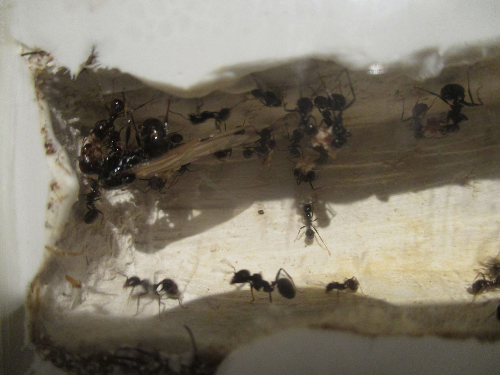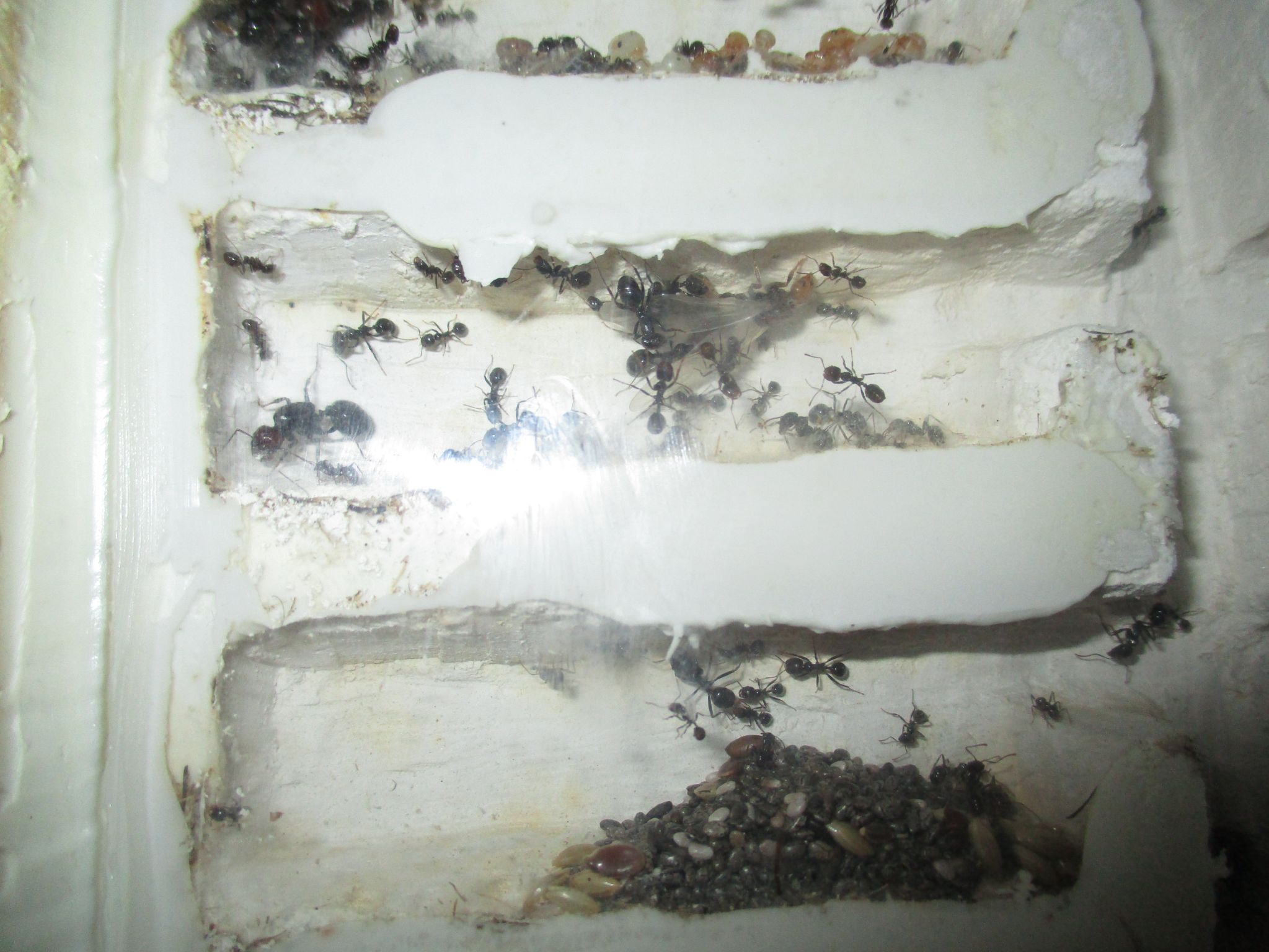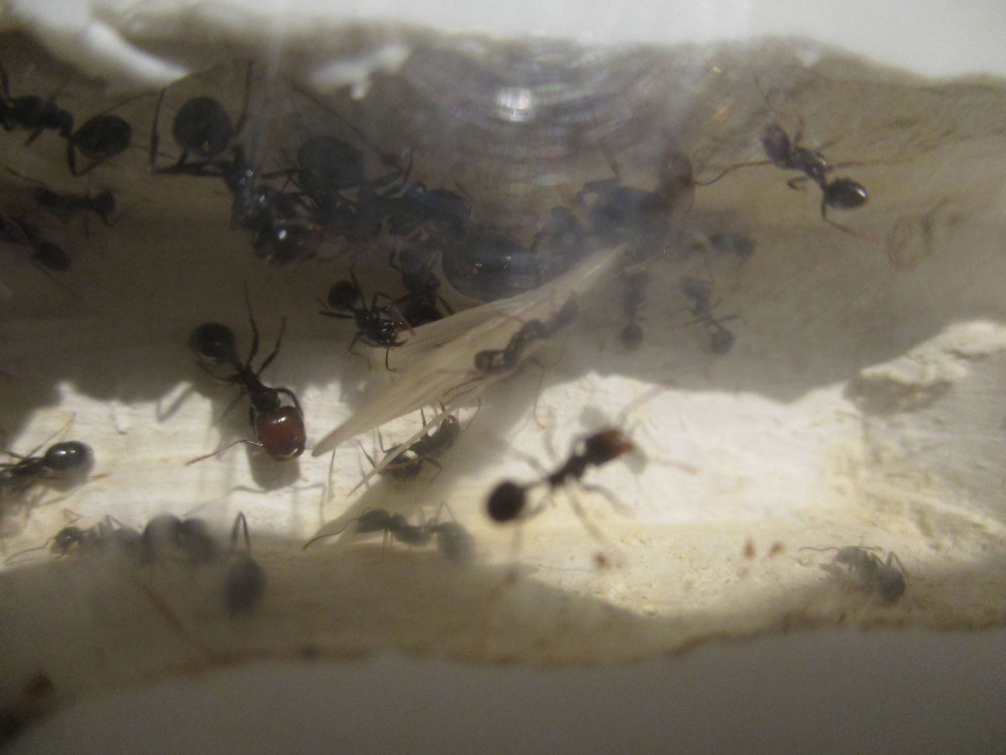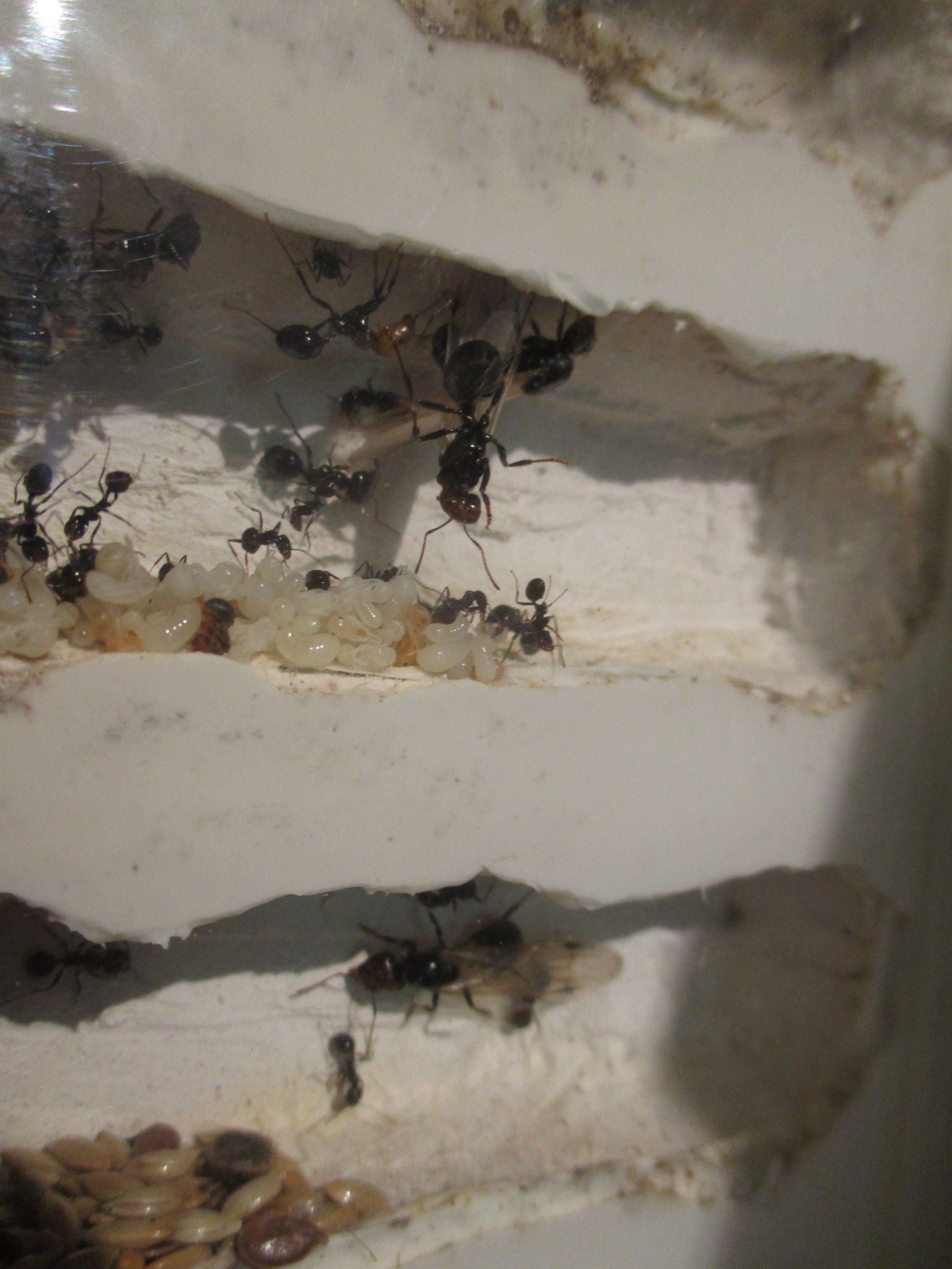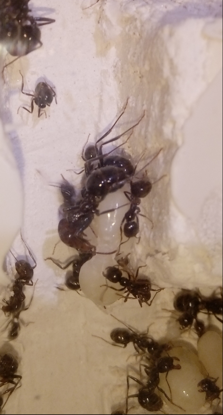 folgendes ich glaube das meine Messor barbarus Kolonie eine Jungkönigin herranzieht, die Nacktpuppe sieht stark danach aus. Leider bekomme ich kein Foto hin auf welche man die