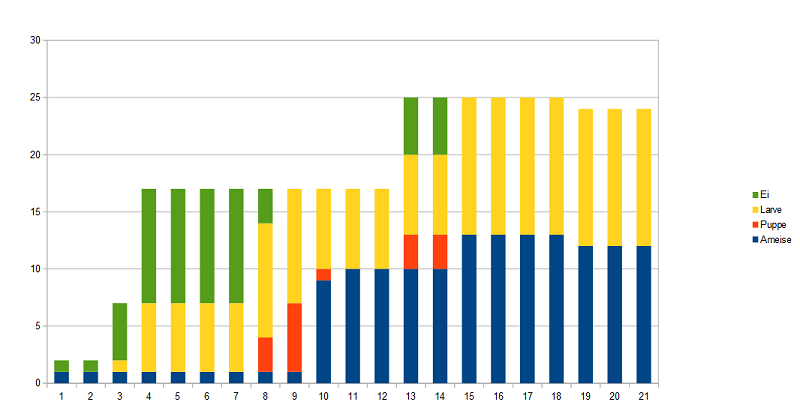 21 Wochen habe ich aufgezeichnet, wie sich die Ameisen entwickeln.