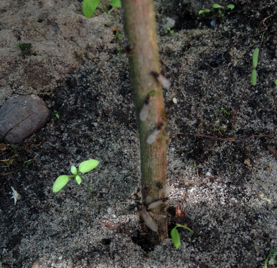 In den letzten Tagen konnte ich beobachten, dass Ameisen mit Flügeln aus den Löchern kamen. Allerdings nur wenige. Davon wurden einige von den normalen Tieren gepackt und wieder in die Gänge hineingezogen.