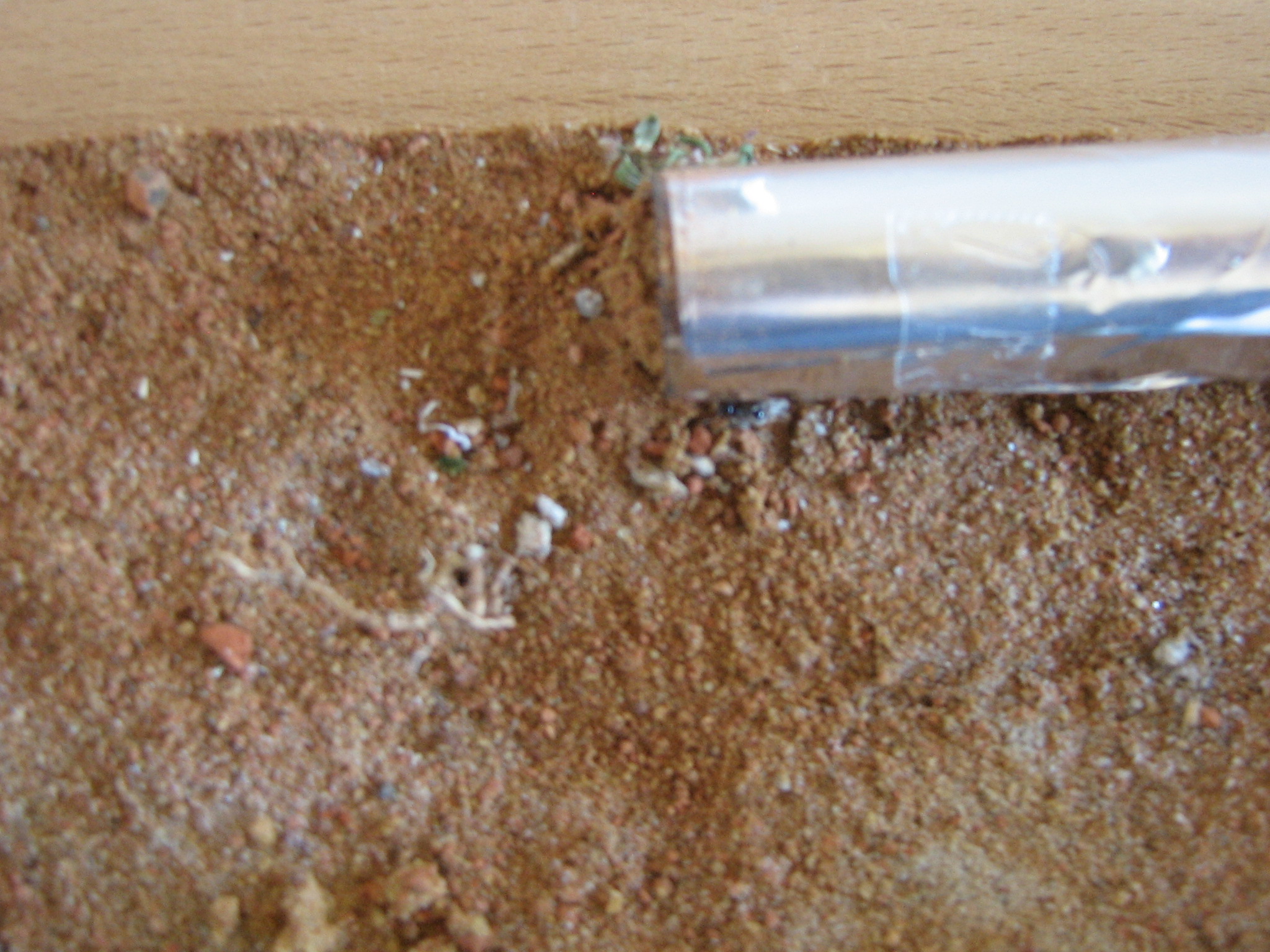 Die von mir lang ersehnte Messor capitatus Kolonie ist heute endlich bei mir zu Hause angekommen!:bananadancer: Sie waren in einem kleinen Packet eingepackt, in dem zudem noch Körnermischungen und zwei TrĂ€nken enthalten waren. Ich habe das Zeitungspapier, in dem das Rg eingepackt war, entfernt und schon strahlten mich eine wohlbehaltene Gyne und ca. 13 Arbeiterinnen an. Die Kolonie wurde meiner Meinung nicht gepusht, da sich keine Majore und generell grĂ¶ĂŸere Arbeiterinnen im Rg aufhielten.