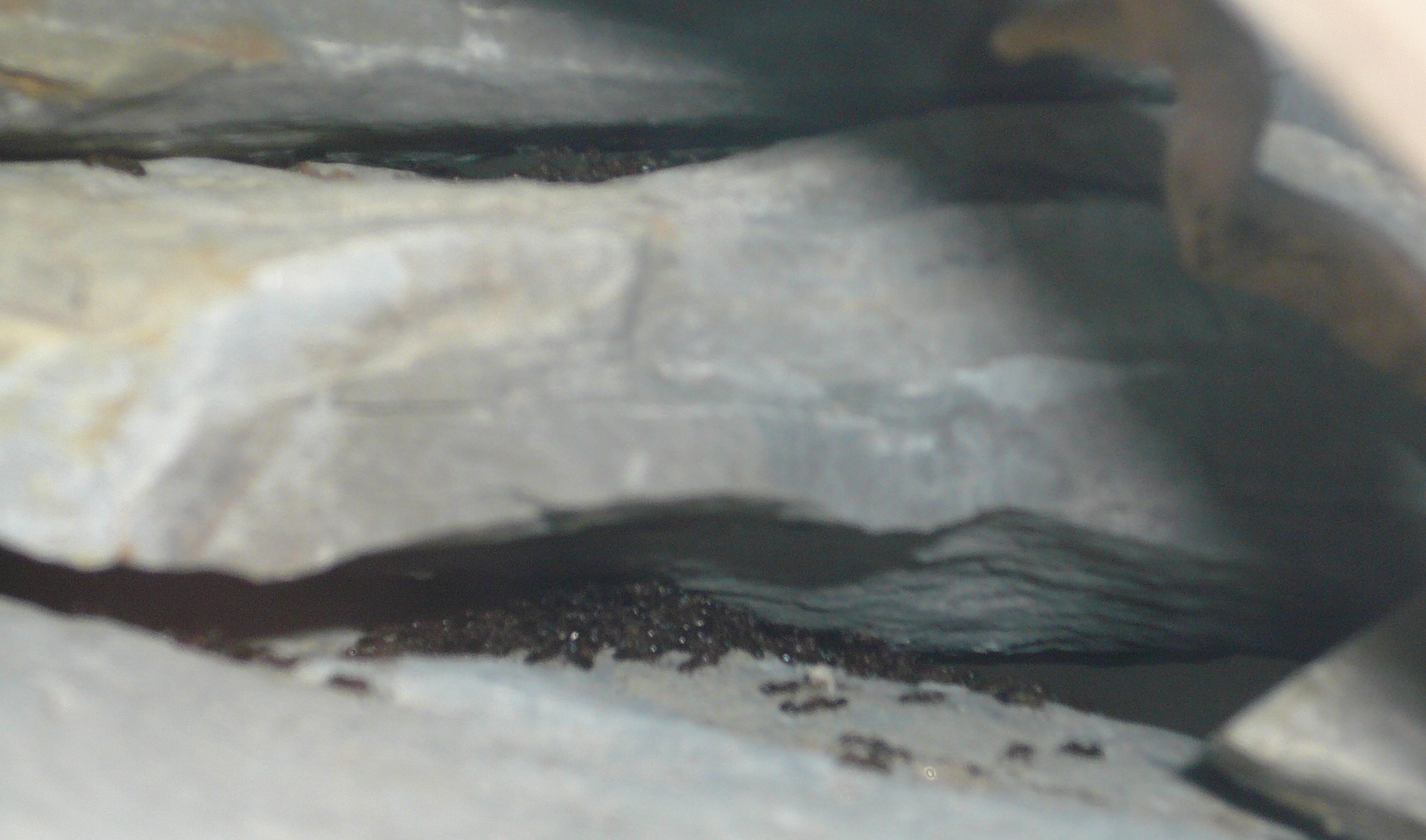 Dass die Glasplatte nur auf dem Ytong auflag ohne eine Dichtung dazwischen, schien mir riskant fĂŒr eine so kleine Art. Silikon auf den Ytong, Frischhaltefolie unter das Glas, beides aufeinanderdrĂŒcken, warten, perfekt angepasst. Dachte ich. Nachdem das Silikon getrocknet war, lieĂ sich das Glas einfach nicht mehr entfernen, trotz dazwischenliegender Frischhaltefolie. Erst nach einigem Gefluche und Gezerre gelang es. Ich habe einen zusĂ€tzlichen Gang gegraben, um auch die BewĂ€sserungskammer als Nest nutzen zu können, alle GĂ€nge vergröĂert und dann mit Gips wieder verkleinert (nicht ohne Kohlenstaub in den Gips zu mischen, um die hellen Meisen besser zu sehen) und schlieĂlich einen abhebbaren Arenaboden aus Gips beim dritten Versuch geschafft (so kann ich auch in die GĂ€nge unter der Arena einsehen).