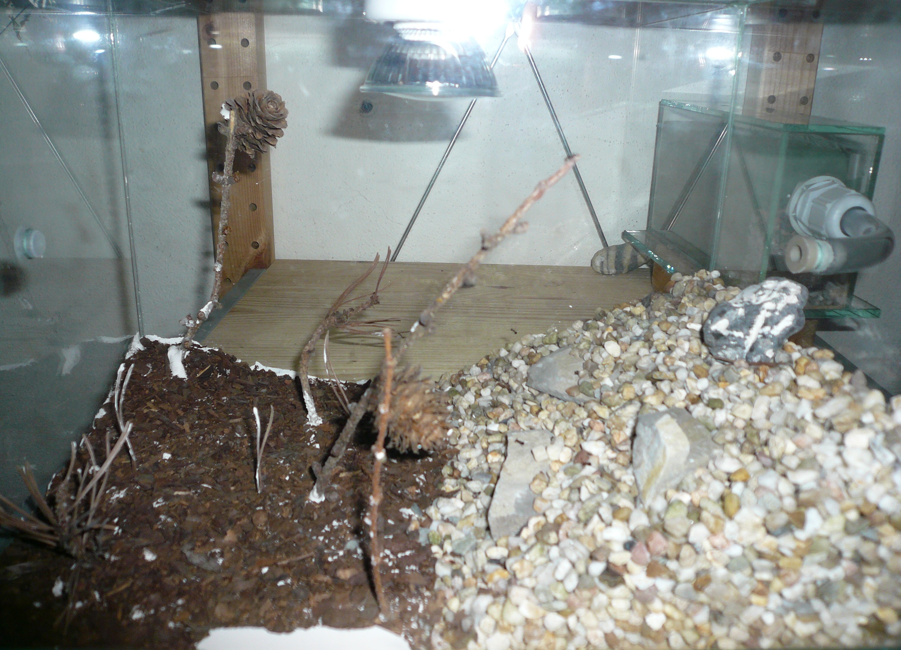 Winterruhe genieĂen durften^^). Hier hat sich nicht viel verĂ€ndert, sie zeigen sich nur wenns Futter gibt, dann kann man sie aber schön beobachten. Ich bin noch nicht so recht zufrieden mit meiner Haltung, denn die LF schwankt stark, je nachdem ob ich dran denke, zu sprĂŒhen, ich hab da noch nicht so recht ein GefĂŒhl fĂŒr entwickelt. AuĂerdem gab es im Winter teilweise Protein-EngpĂ€sse, nachdem ihnen die eingefrorenen MehlwĂŒrmer nicht so geschmeckt haben.