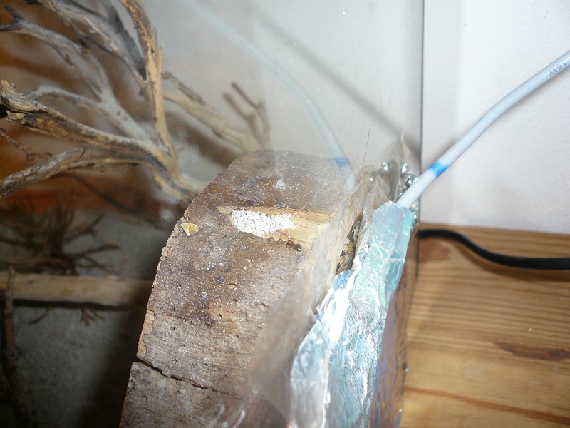 - "Ausgangspfusch": Da das Becken keine Bohrungen hat, befindet sich der Ausgang oben in einer Ecke. Ein Schlauchstück führt auch durch den Paraffinölrahmen. Aktuell ist der Ausgang übrigens zu.