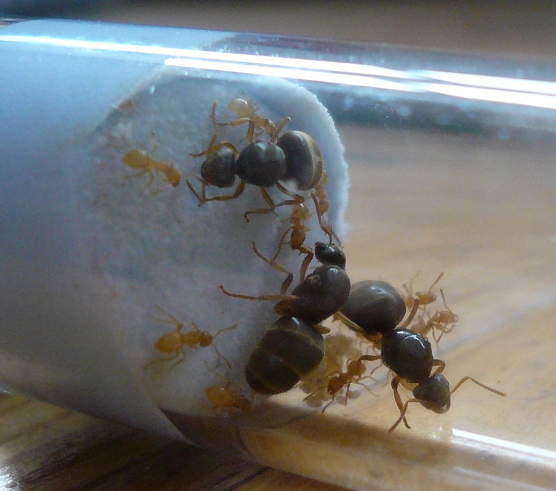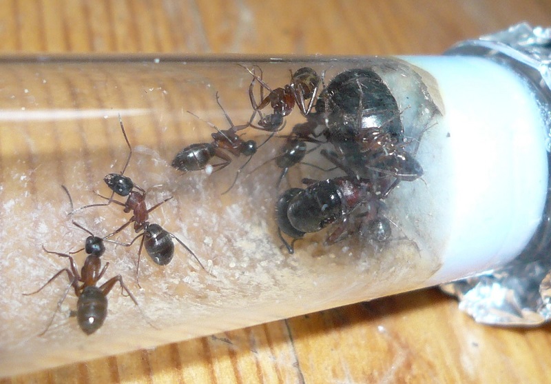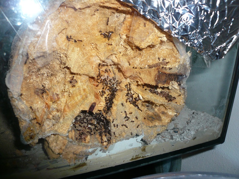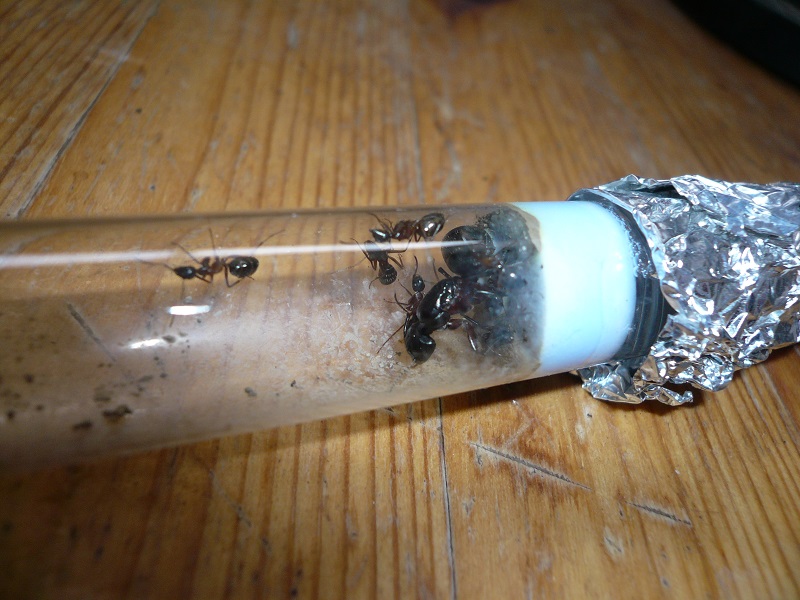 C. herculeanus hatten in der WR ein Nahtoderlebnis, der Wassertank war halb gefroren, dadurch hat sich der Nanoporen-Stopfen (ich benutze die, weil sich die Ameisen darin nicht verheddern können - ja, auch diese Art von Tod hate ich schon^^) verschoben und das Wasser hat nach dem Tauen das RG geflutet. Alle Arbeiterinnen lebten noch, nur die
