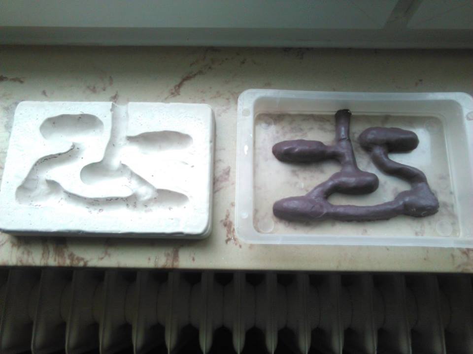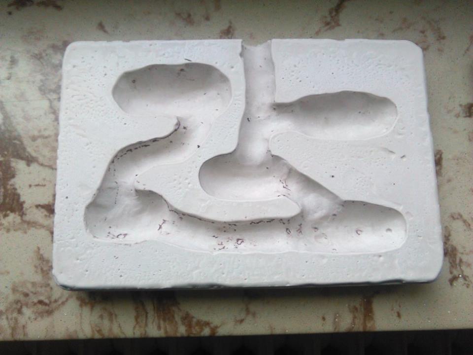 Alles wurde mit Gips ausgegossen. Nachdem es getrocknet war, konnte ich die Teile leicht voneinander lösen.