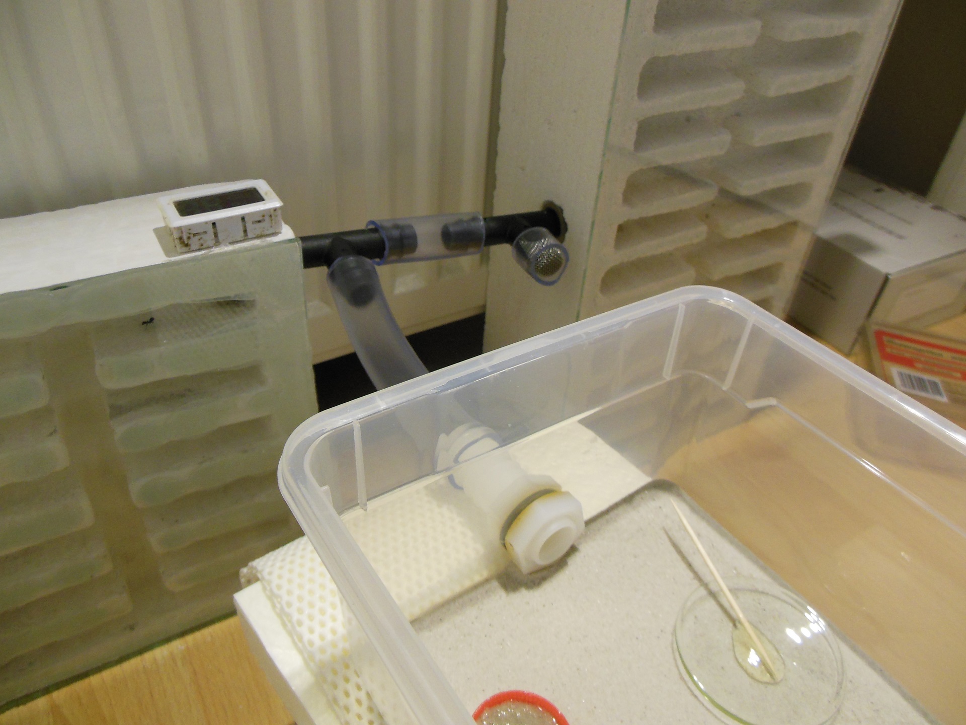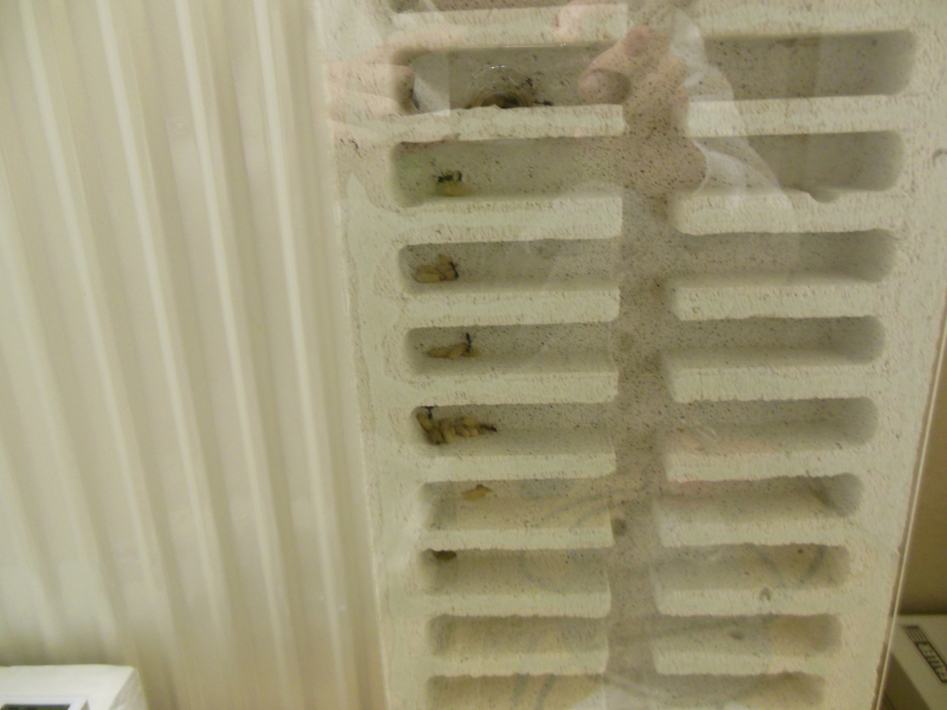 Damit das ganze natĂŒrlich fĂŒr die Ameisen attraktiver ist, habe ich die Nester direkt an die Heizung gestellt . ZunĂ€chst haben die Ameisen diePuppen in das linke T-StĂŒck untergebracht. Wahrscheinlich waren da die Temperaturen angenehm. Ein paar Puppen guckten zunĂ€chst aus der Verbindung heraus. SpĂ€ter wurden die Puppen teilweise in das gegossene Nest eingetragen.
