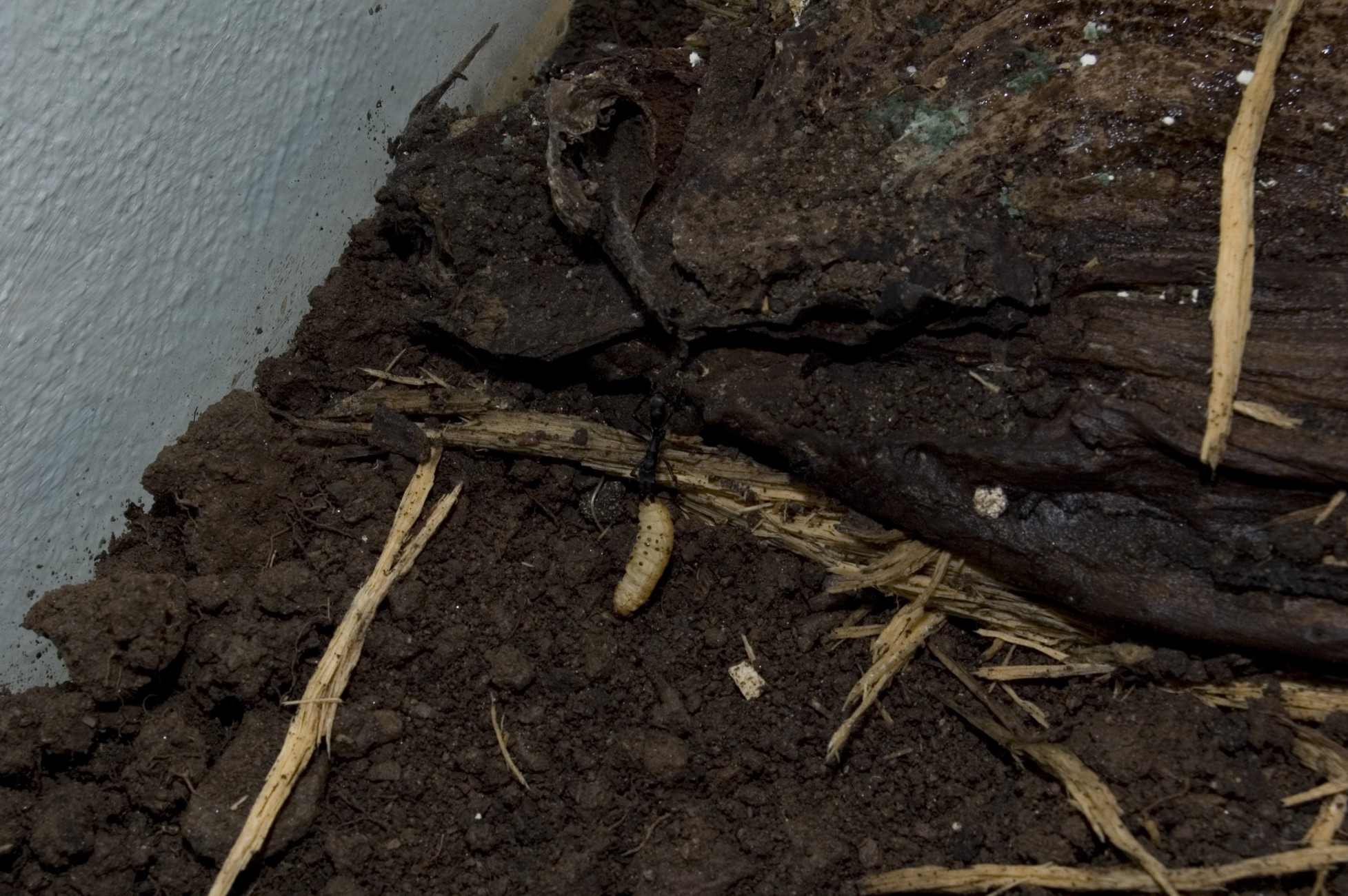 Sie fangen auch an unter der Rinde Substrat herauszutragen.