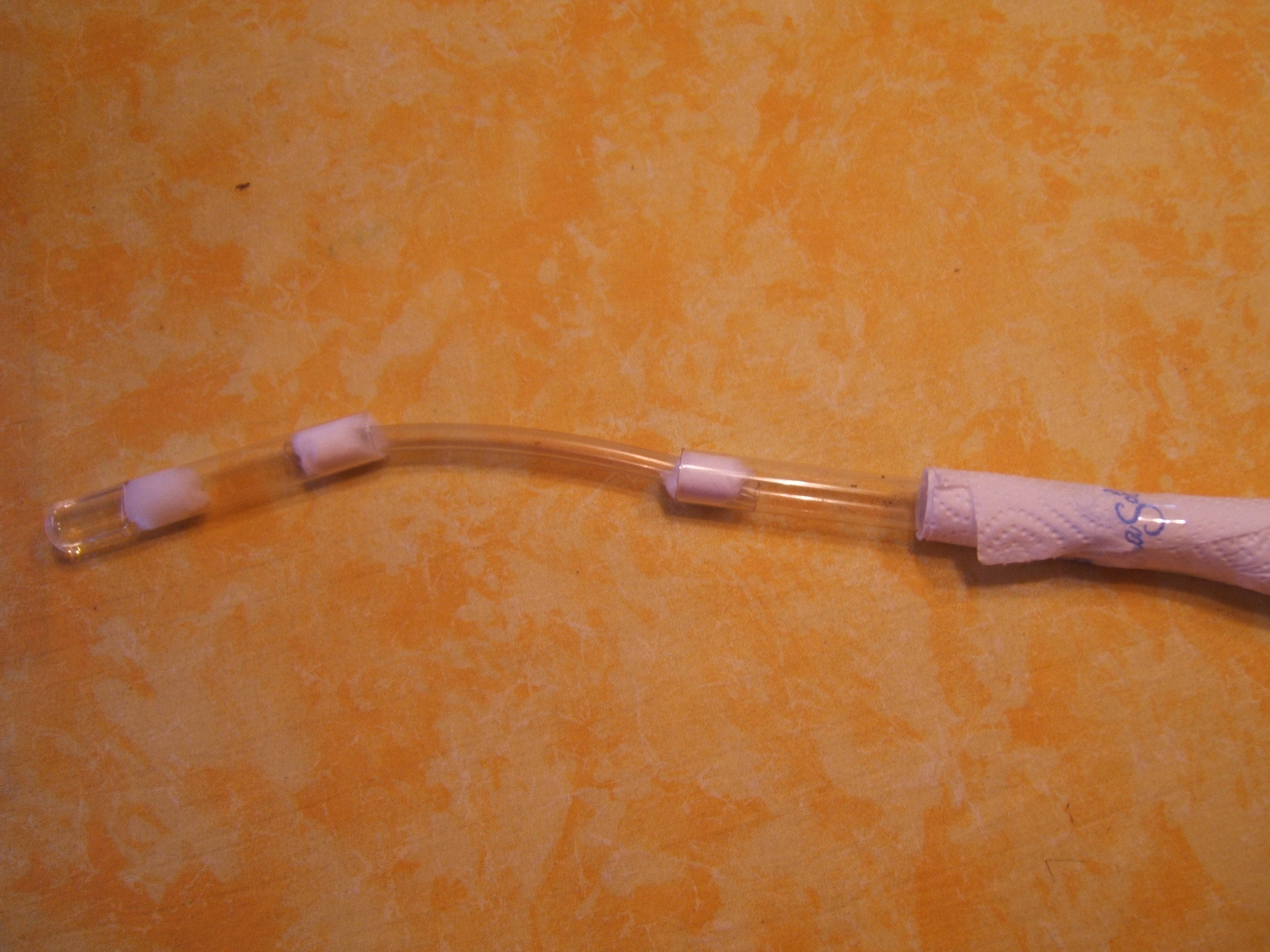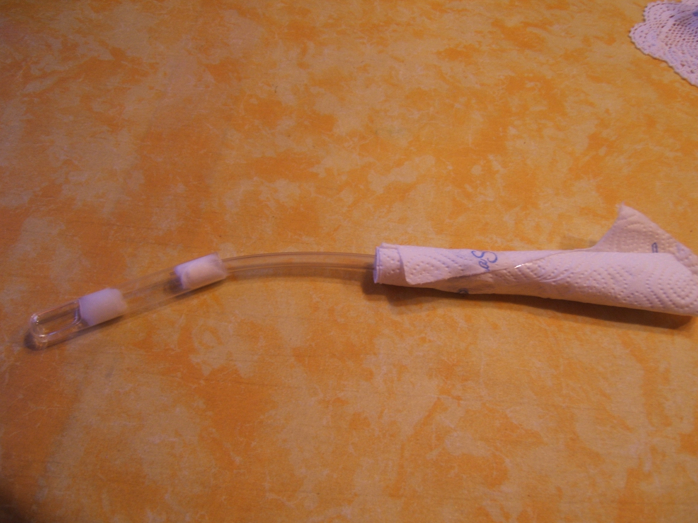 Ich hab sie mit einer Pinzette heraus geholt aus dem Schlauch.