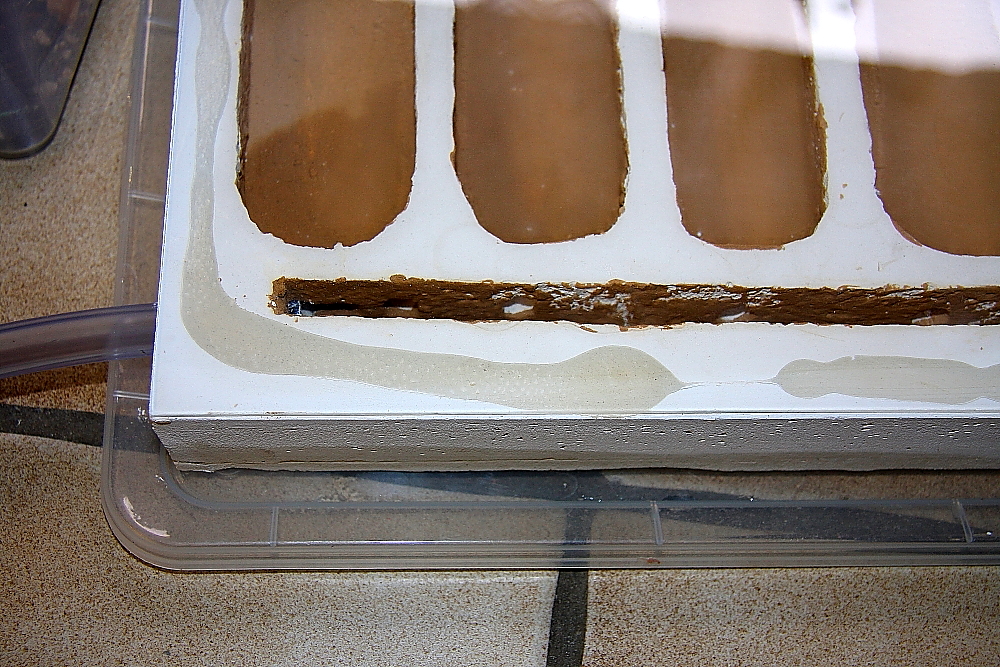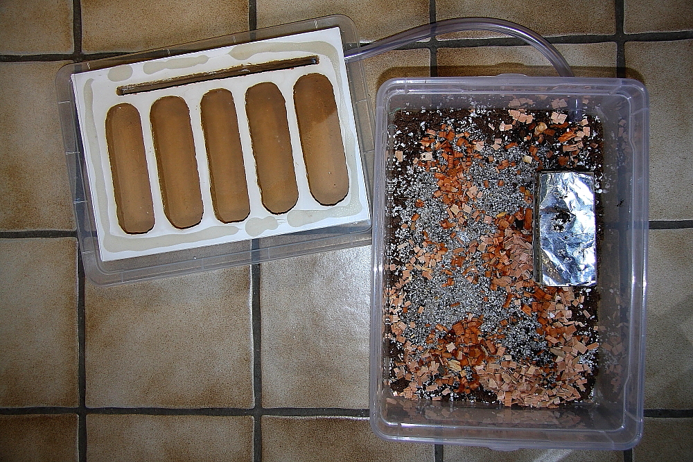 (In einem neuen Nest wie hier, gut zu sehen wie das gegebene Wasser durch den Gips zieht)