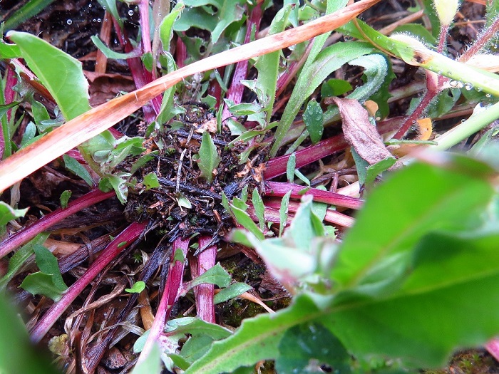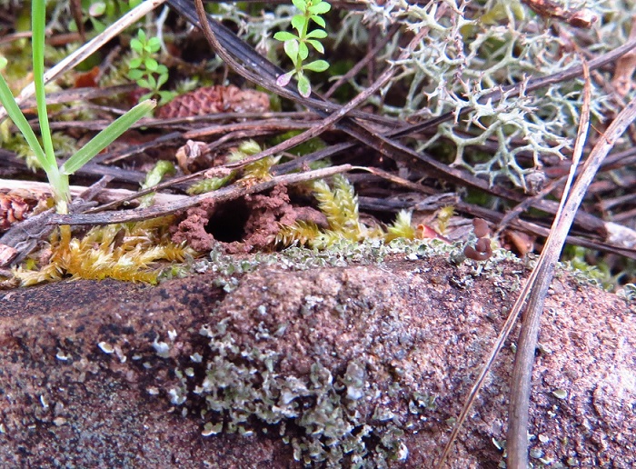 Tapinoma nigerrimum Nesthügel werden übrigens selbst nach starken Regenfällen repariert und bestehen längerfristig, nicht wie etwa bei Tapinoma erraticum die sich nach fast jedem Regen einen neuen kleinen Hügel bauen müssen.