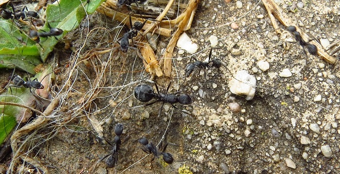 Andere Arten mit ähnlicher Futterbeschaffungsstrategie werden von den riesigen Tapinoma Nestern in einigen Habitaten komplett verdrängt. Etwa konnte ich nur ein einziges mal in einem eher kühlen Wald einige Pheidole pallidula Nester entdecken. Die Art fehlt in den meisten Habitaten gänzlich, im krassen Gegenteil zu Kroatien, wo diese eine der häufigsten Arten darstellt.