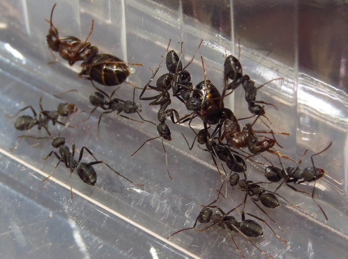 Andere Camponotus Populationen waren bei weitem nicht so dicht, eher fand man diese nur selten durch Zufall. Etwa die entzückende Camponotus ruber, die moppeligste Camponotus Art, die ich je gesehen habe. Diese Ameisen legen kleine Nester unter Steinen an und sind hauptsächlich in Wäldern oder zumindest an Bäumen zu finden.