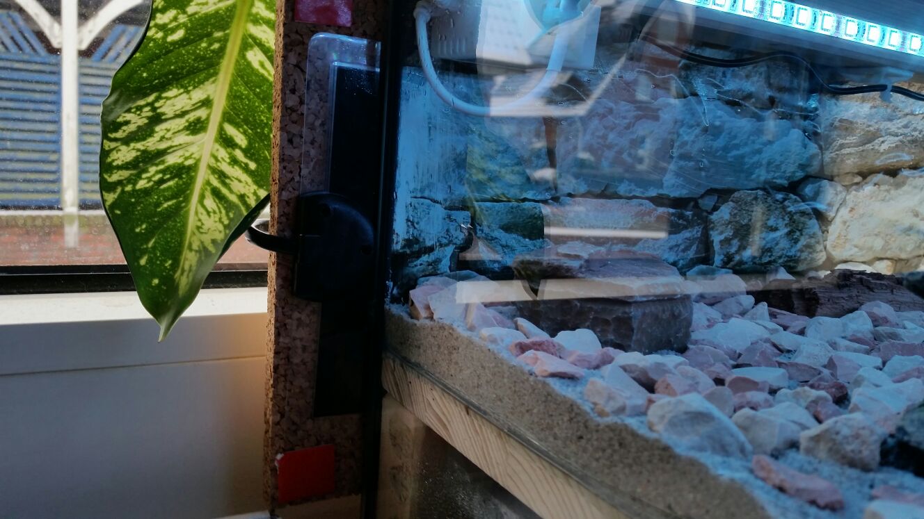3. Nestbereich (untere Etage des Beckens) zu kühl. Mit dem IR-Thermometer habe ich Zeitweise nur 22°C gemessen (nachts).