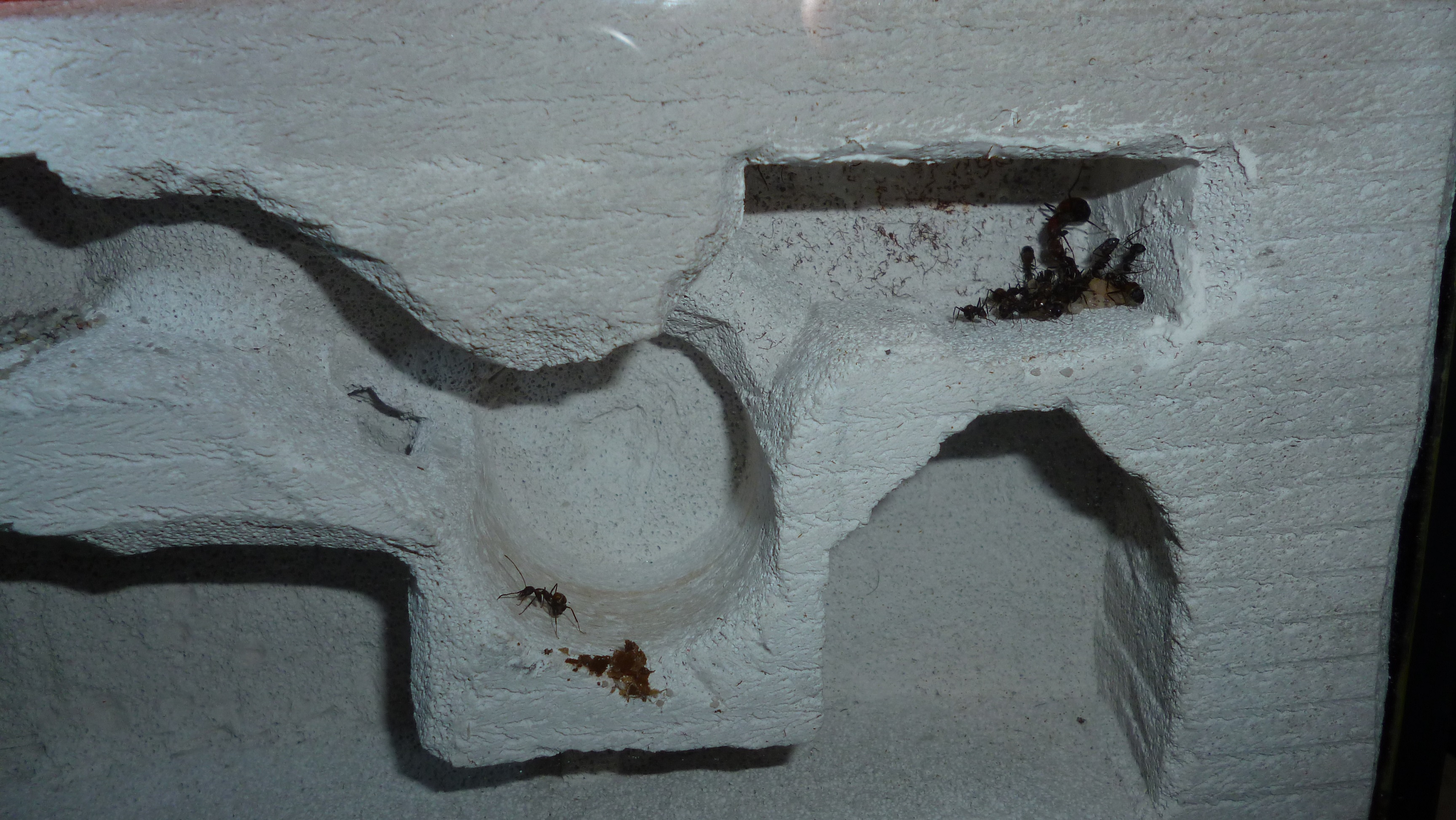 Die Ameisen erkunden 0% des Formicariums, geschweige denn, dass sie mal was zwischen die Mandibeln nehmen um ein bisschen was von A nach B zu schleppen. Ich stellte fest, dass ich nicht der Einzige bin, der diese (schlechten) Erfahrungen mit den nicobarensis gemacht hat. Bisher sind es die absoluten Langweiler, es macht bedauerlicherweise mehr Spaß die Temnothorax zu beobachten...