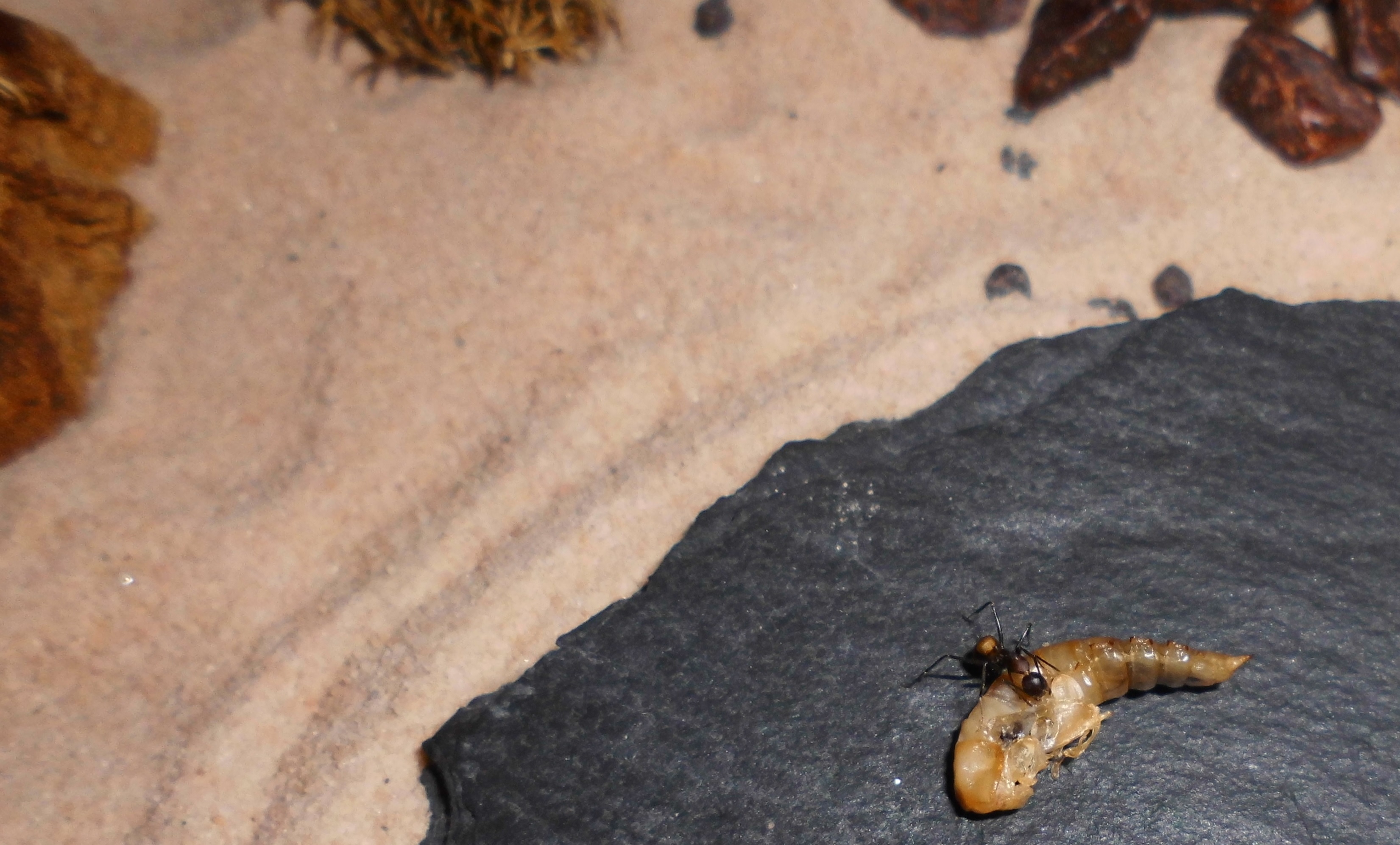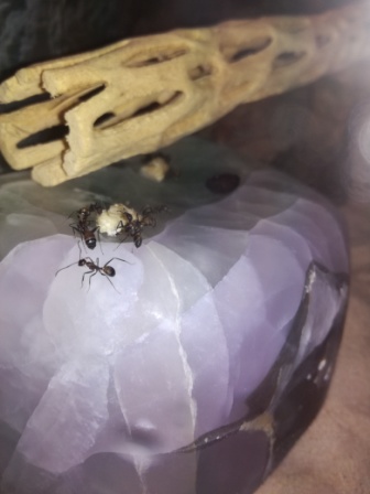 Nachdem ich die Zophobas Larve verfüttert habe, kann ich mich wieder an Spaß und Begeisterung erfreuen, die mit der Ameisenhaltung einhergehen. :)