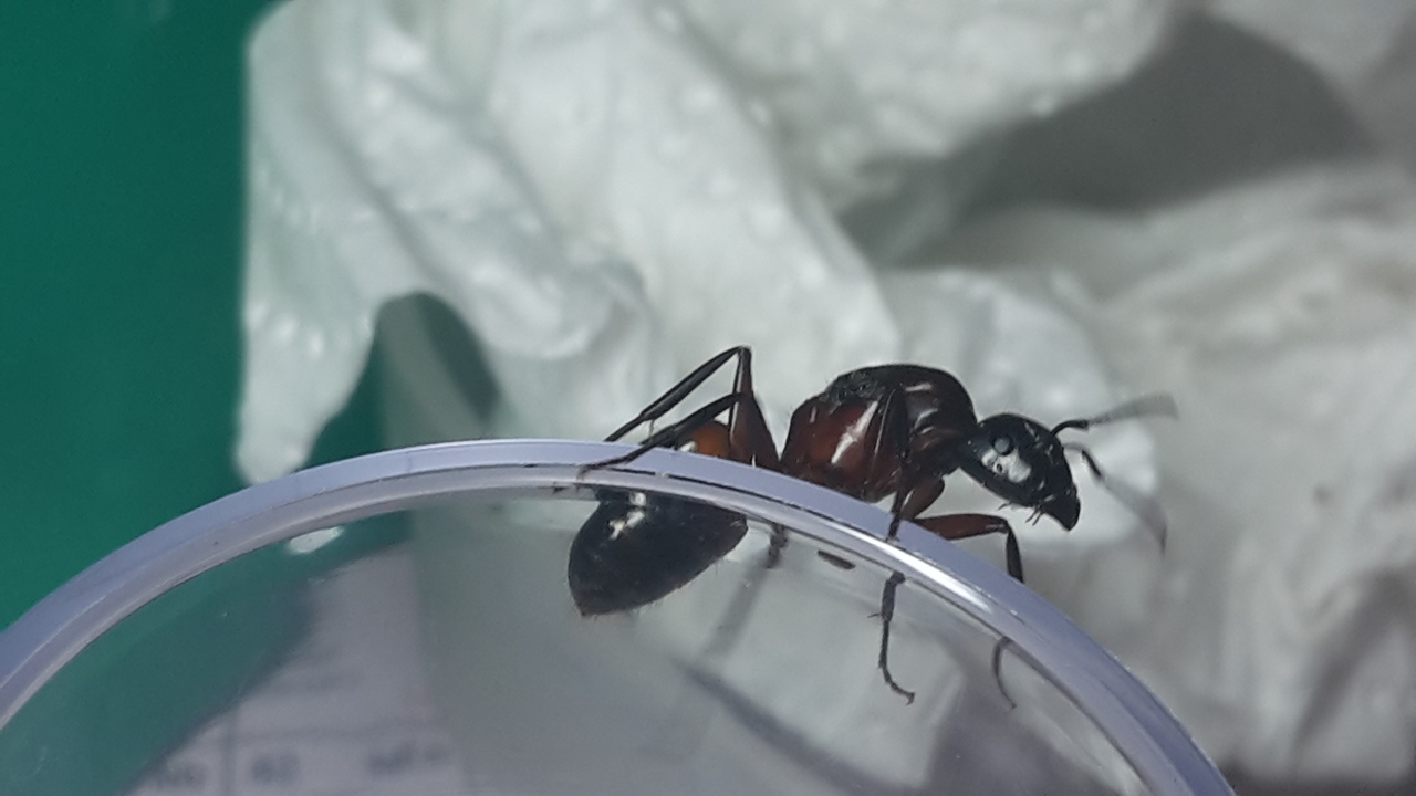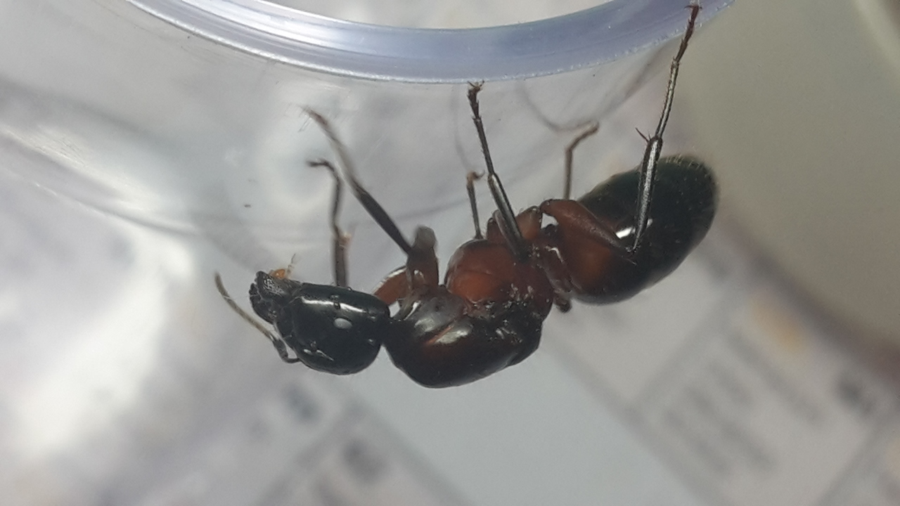 War direkt neben einem Waldameisenhaufen (Formica F. s. Str.), deswegen dachte ich zuerst es sei eine Formica uralensis Jungkönigin, wegen dem schwarzen Kopf - Blödsinn... Nach einigem Suchen im Netz bin ich mir ziemlich sicher, dass es Camponotus ligniperdus ist. Kann mich da jemand bestätigen?