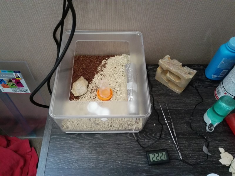 - Ab der dritten Woche spendierte ich ein Terrarienlicht. Dieses hob die Temperatur auf 26 - 27 Grad