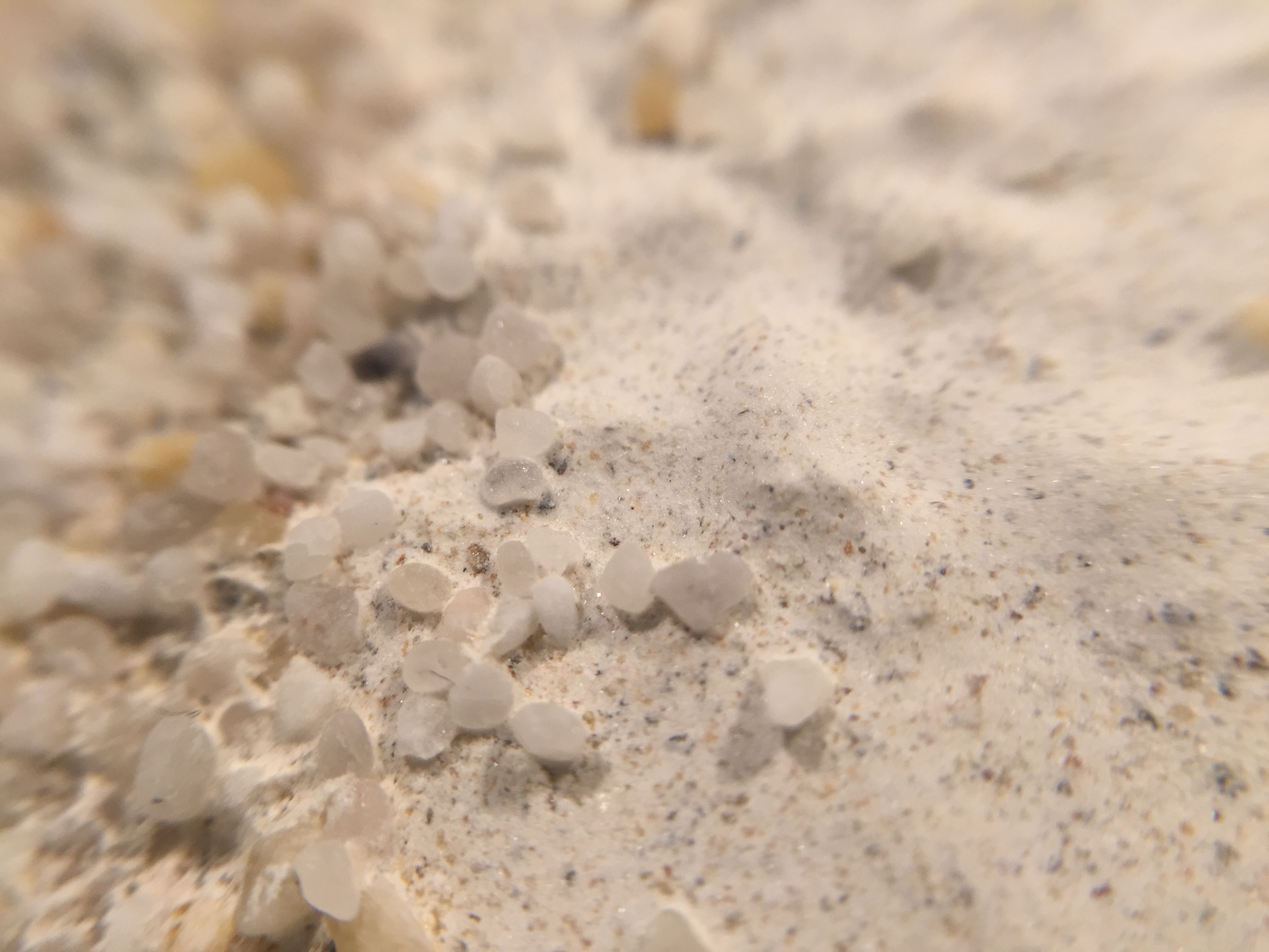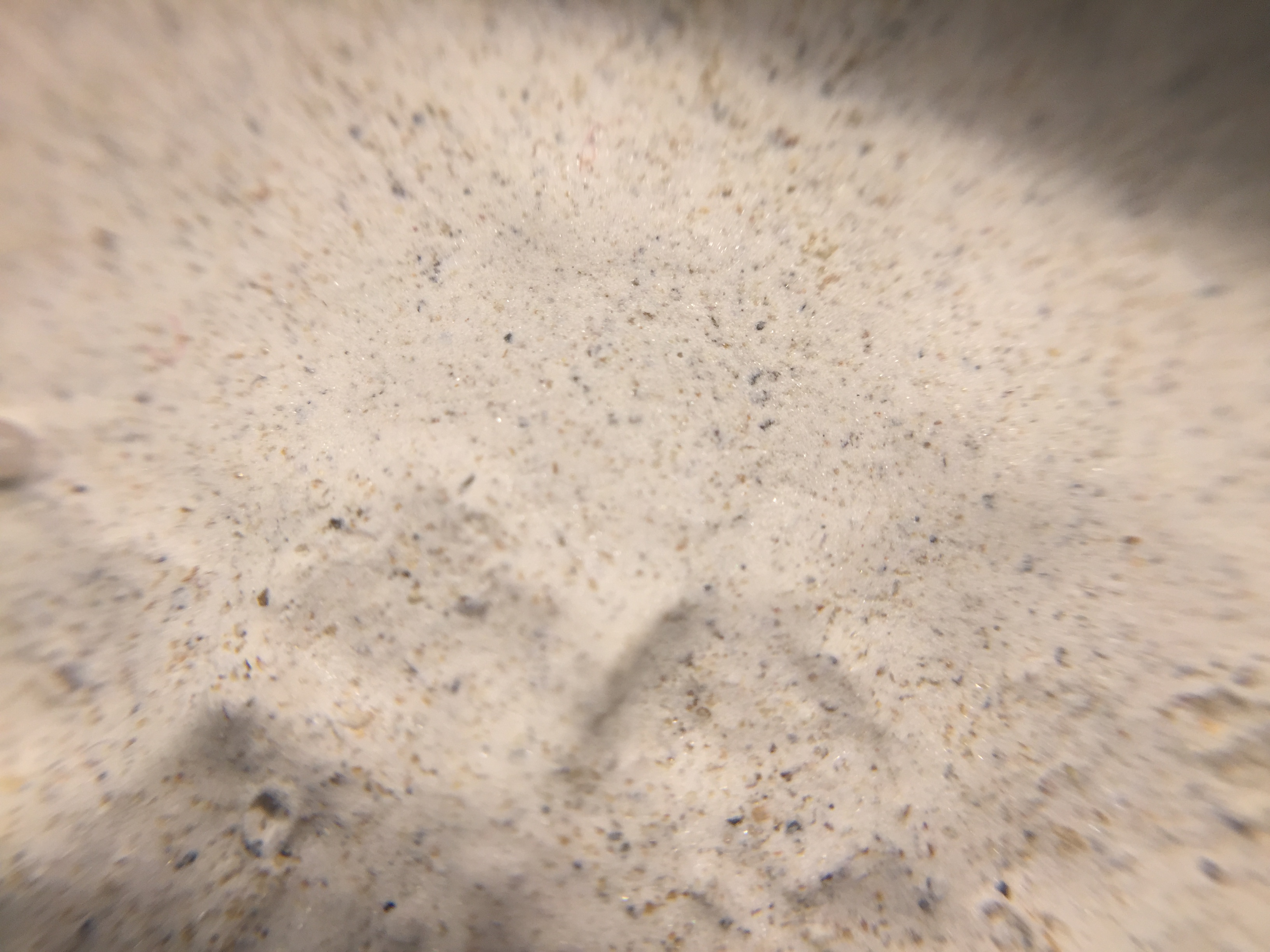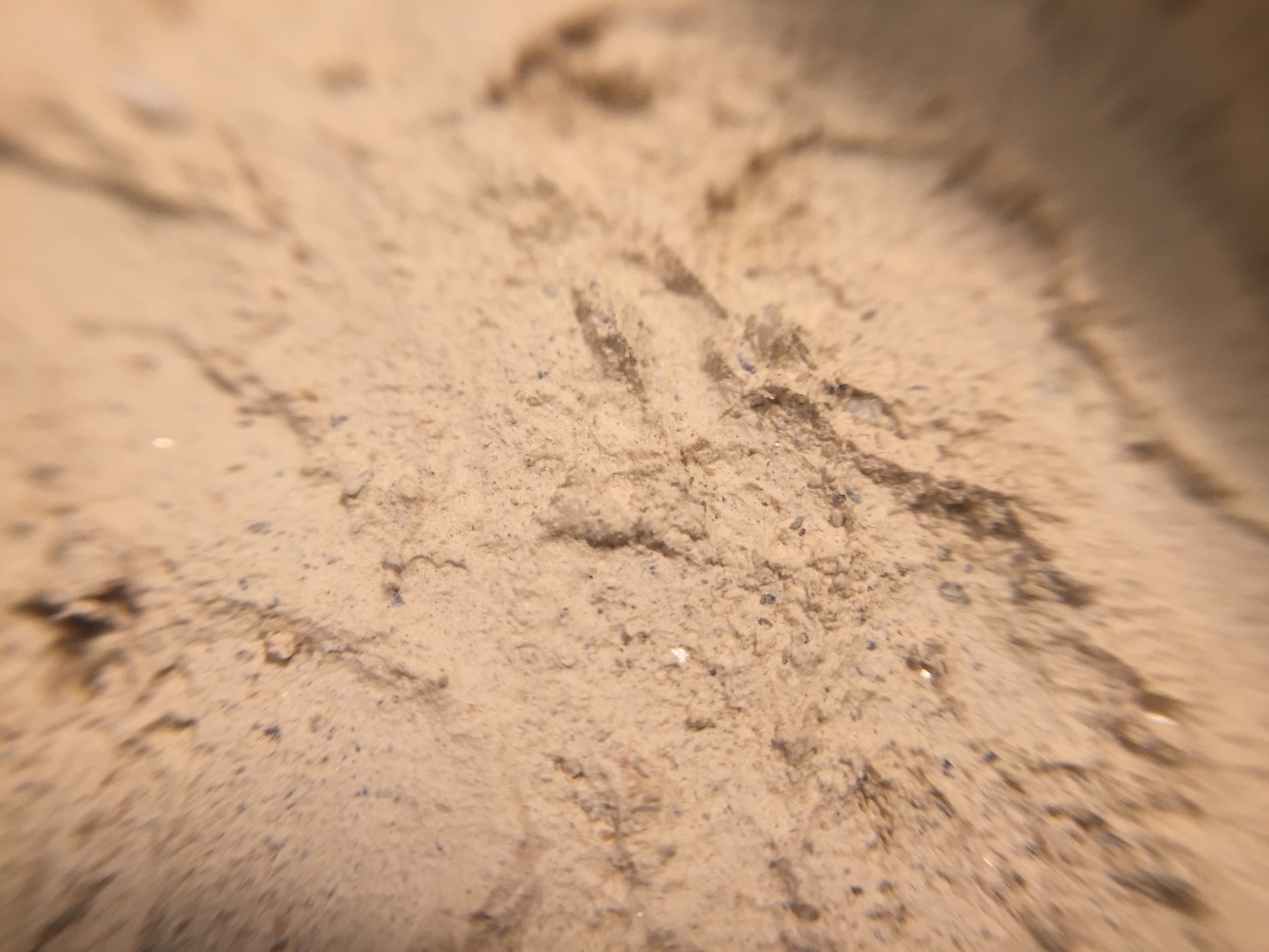 Die OberflĂ€che ist rauher als bei 100% Gips. Die Gipspartikel umschlieĂen den Sand sodass eine schöne Rauhigkeit entsteht die ebenfalls bei Makroaufnahmen wunderbar zur Geltung kommt.