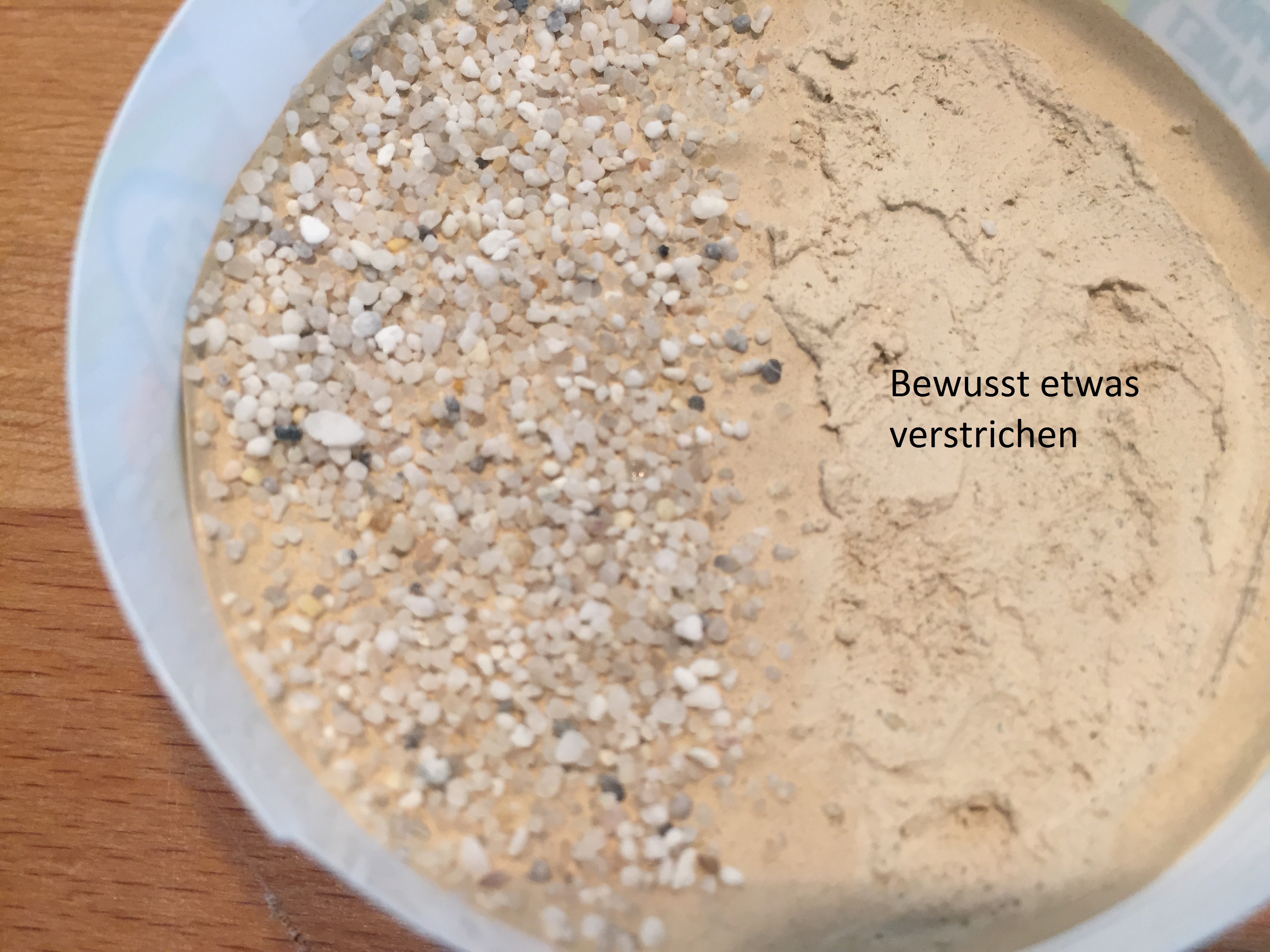 Durch den Sandanteil wird die OberflÀche insgesamt rauer und bekommt eine SprenkelfÀrbung aufgrund der Sandpartikel.