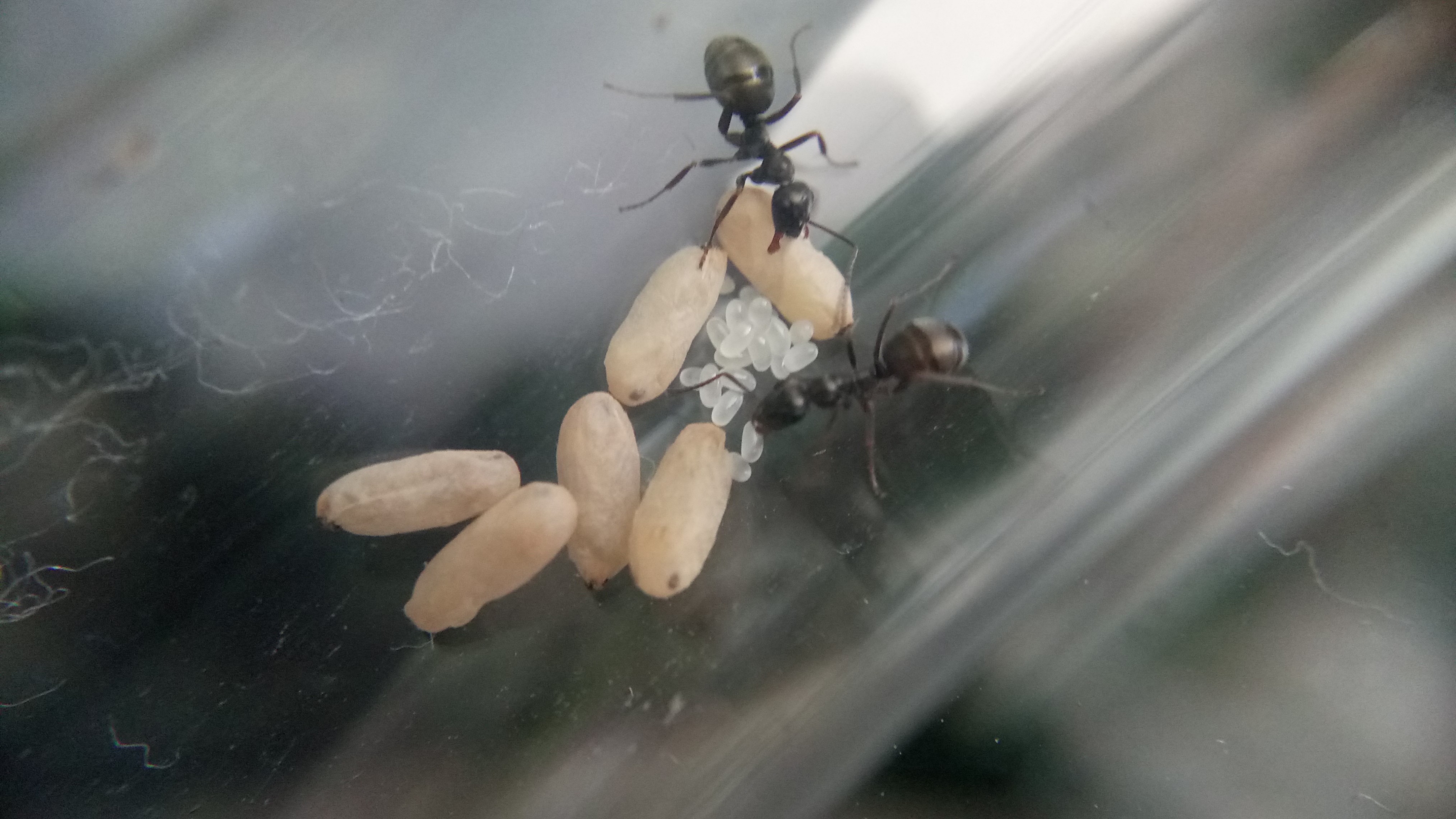Die Serviformica-Arbeiterinnen hatten sich bei Störung gleich um die Eier gekümmert und kurz herumgetragen. Die Eier werden also toleriert.