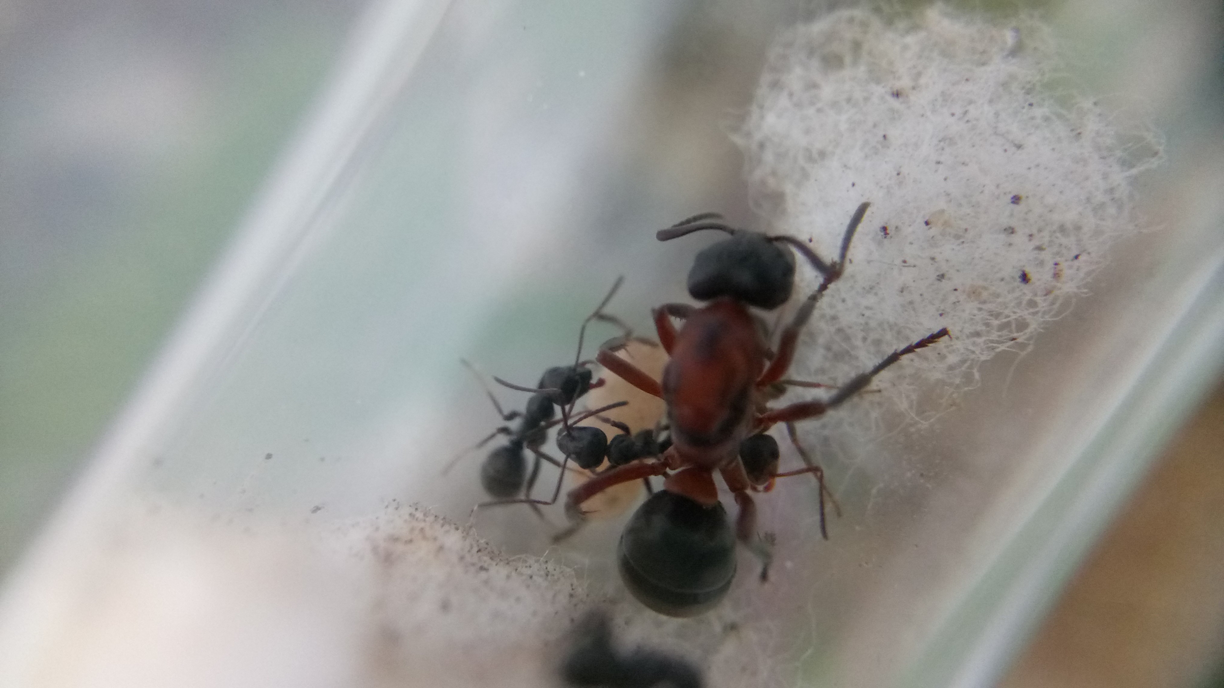 20.06.2018Es ist eine zweite Serviformica Arbeiterin geschlüpft! Gegen 6 Uhr morgens habe ich nochmal nach ihr gesehen und tatsächlich, eine zweite Arbeiterin. Das Bild stammt von Nachmittag, wo die Arbeiterin bereits etwas gefärbt war. Man sieht, dass die