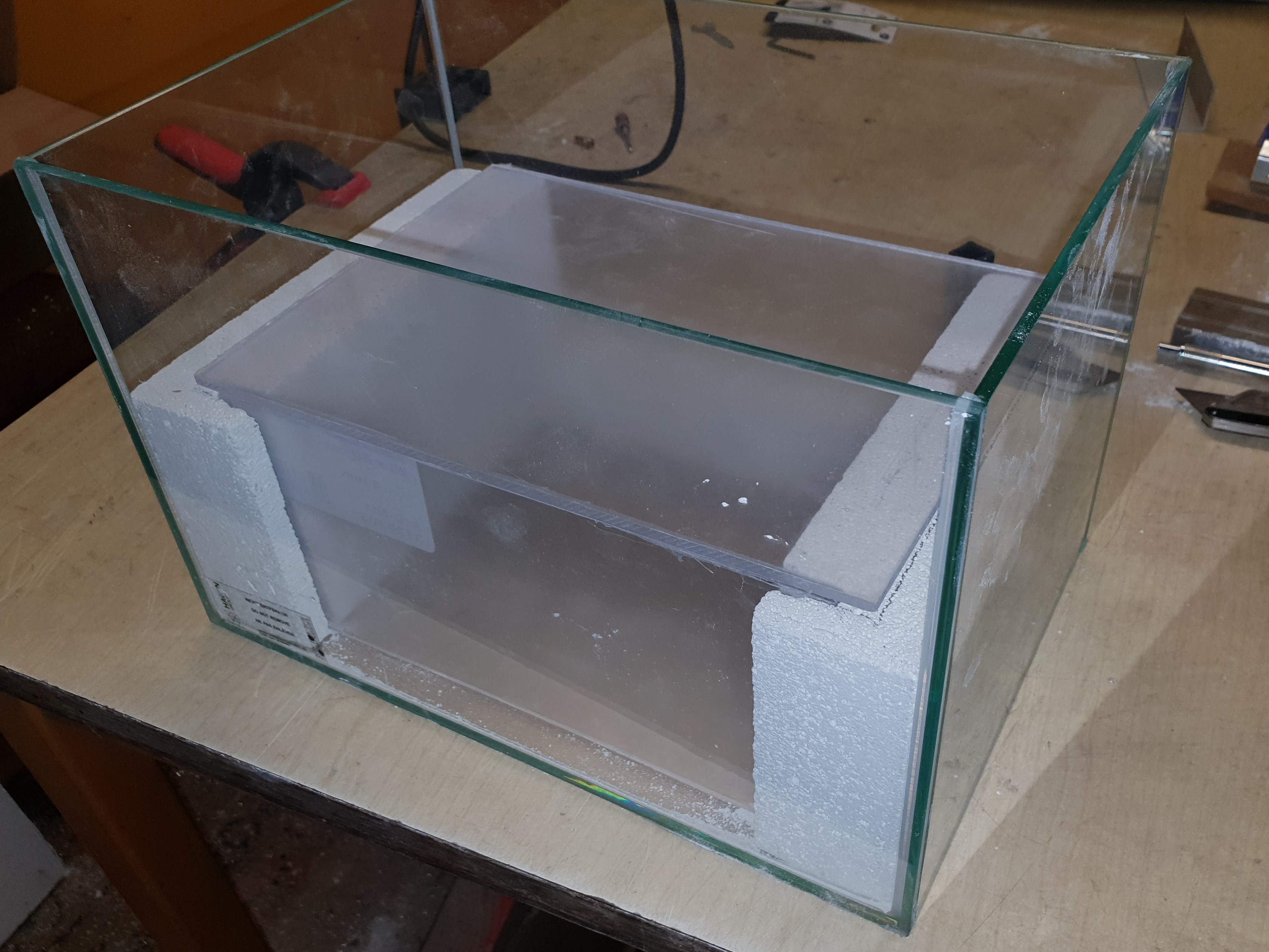 Das kleine Billigaquarium ist 30cm x 20cm x 20cm.