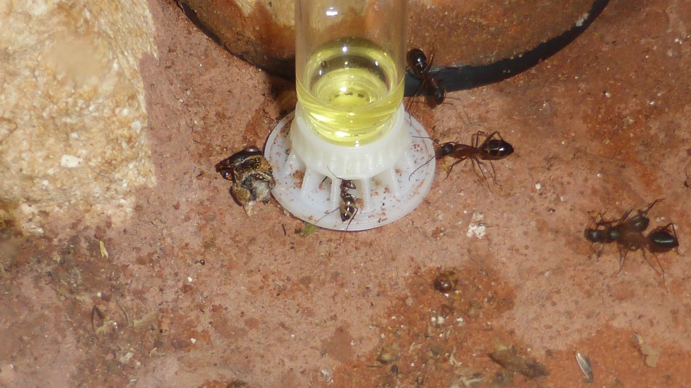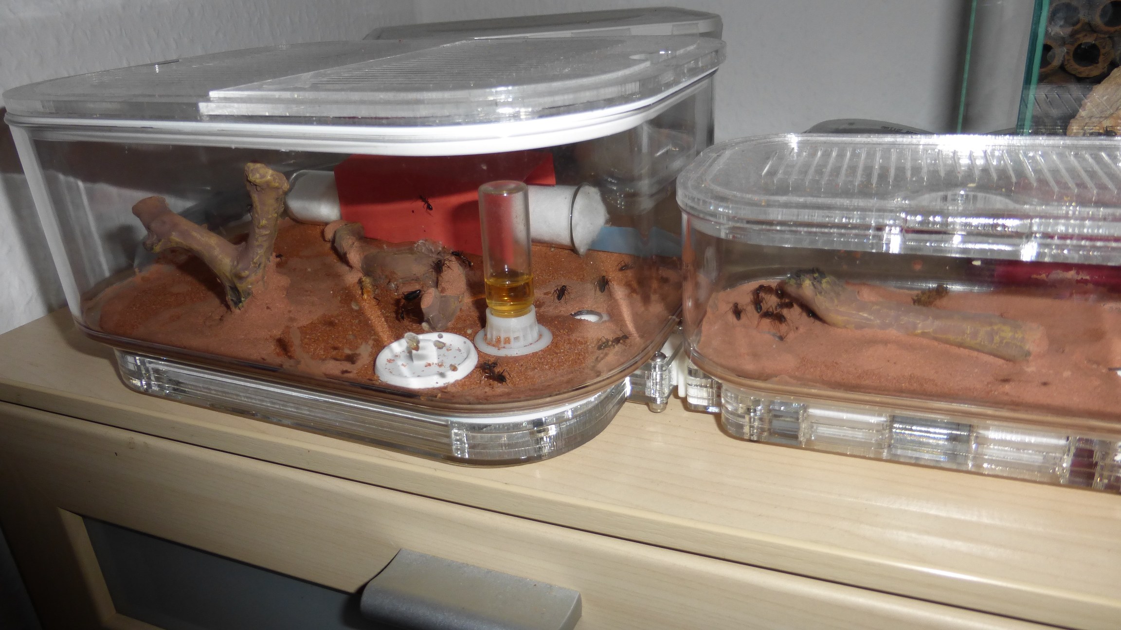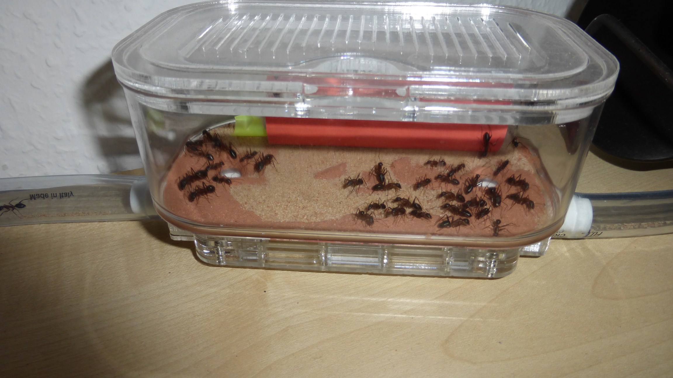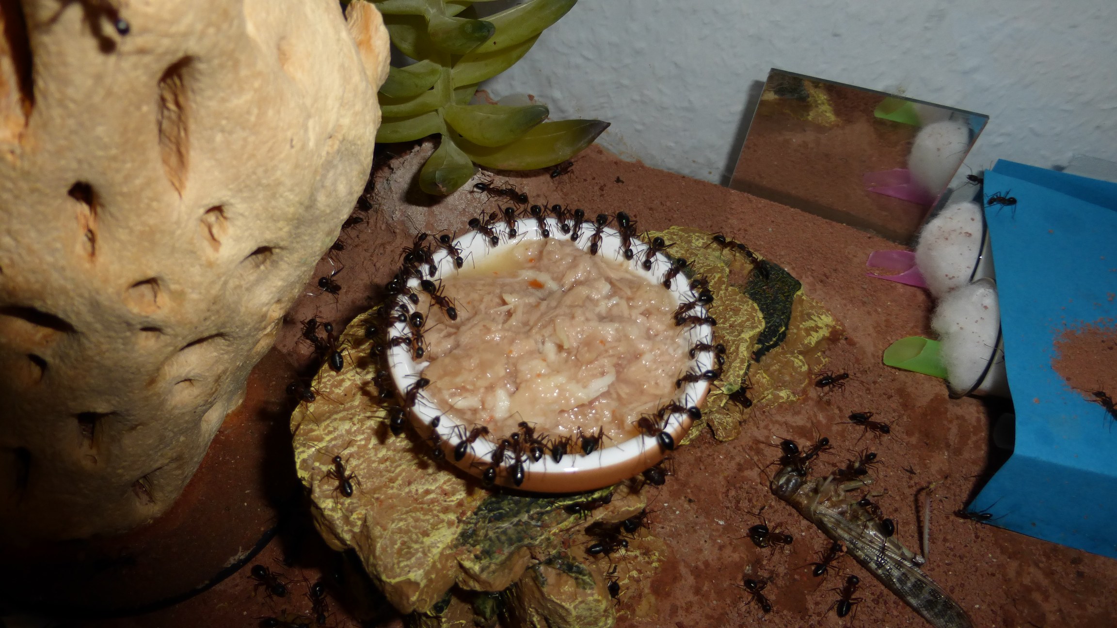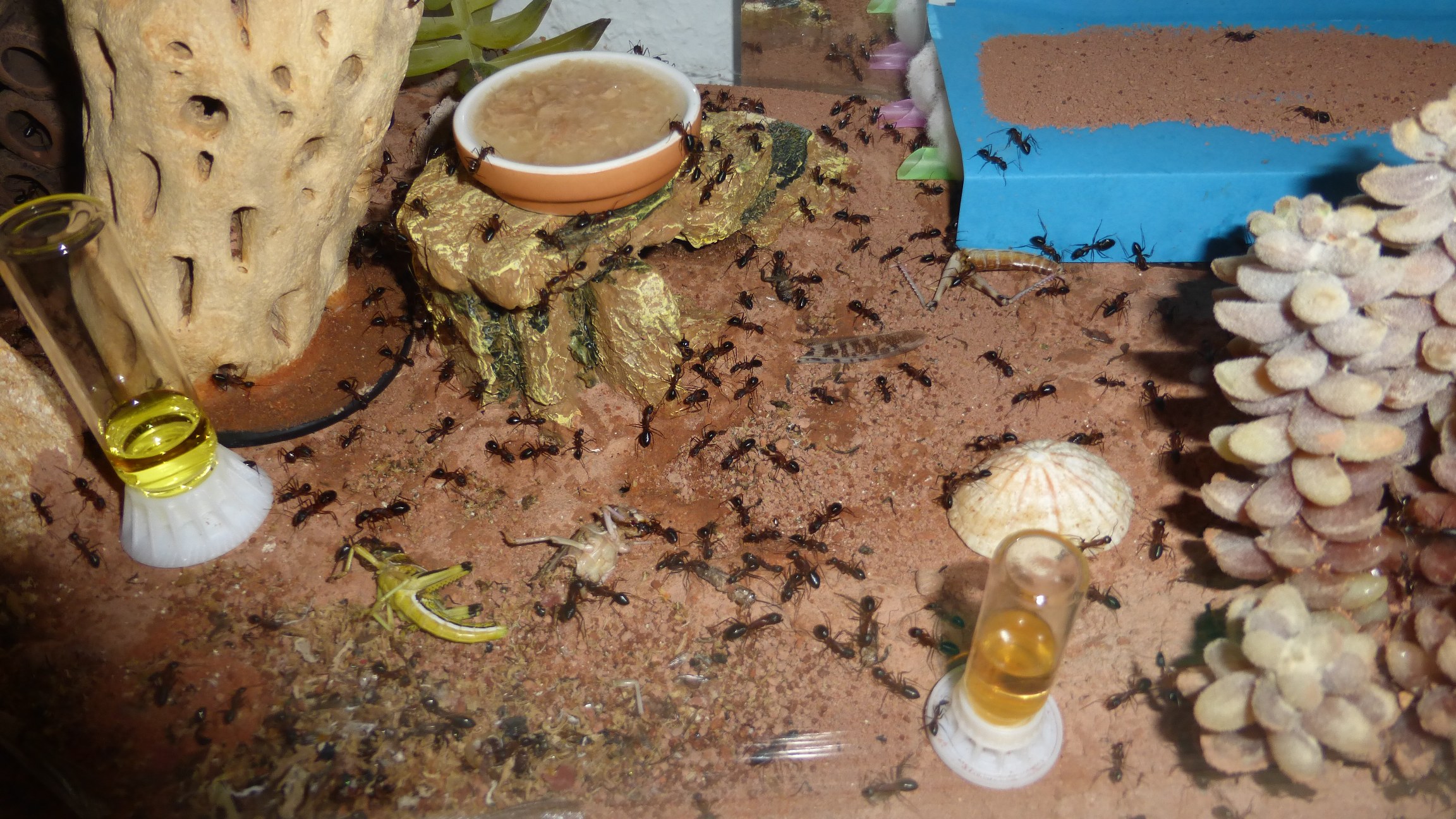 Nach einer interessante Diskussion ĂĽber den Zuckergehalt verschiedener FlĂĽssigkeiten auf Formiculture hab ich mal angefangen Traubenzucker und die Ahronsirupmischung zu geben und den Ameisen scheint das sehr zu gefallen.