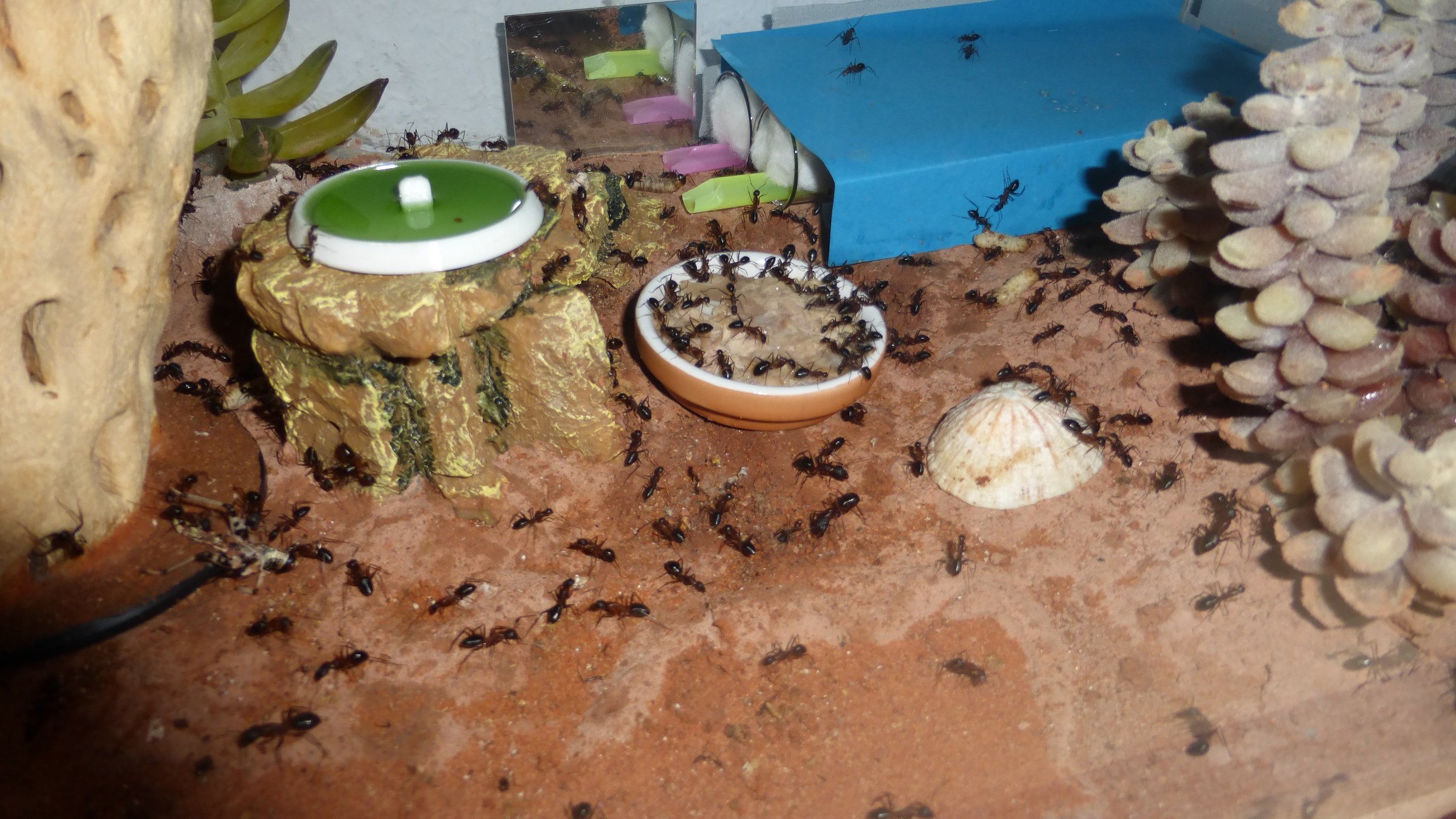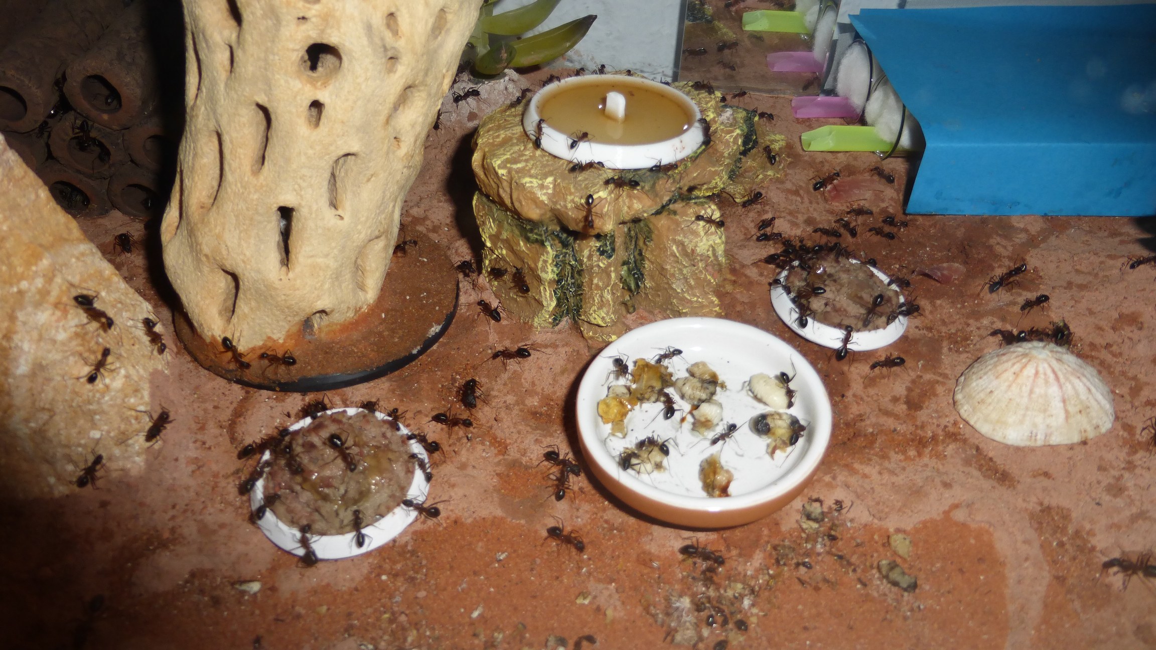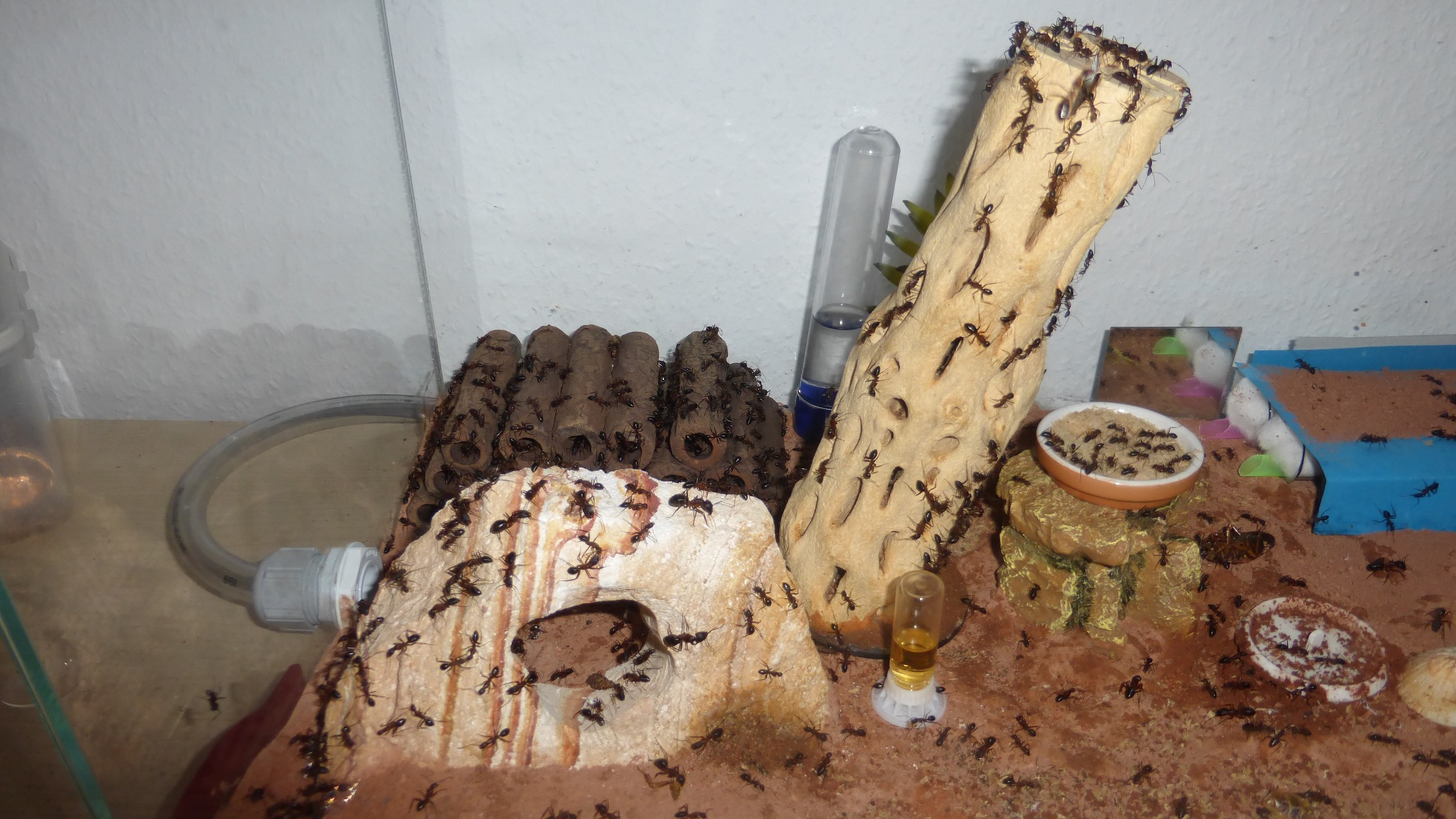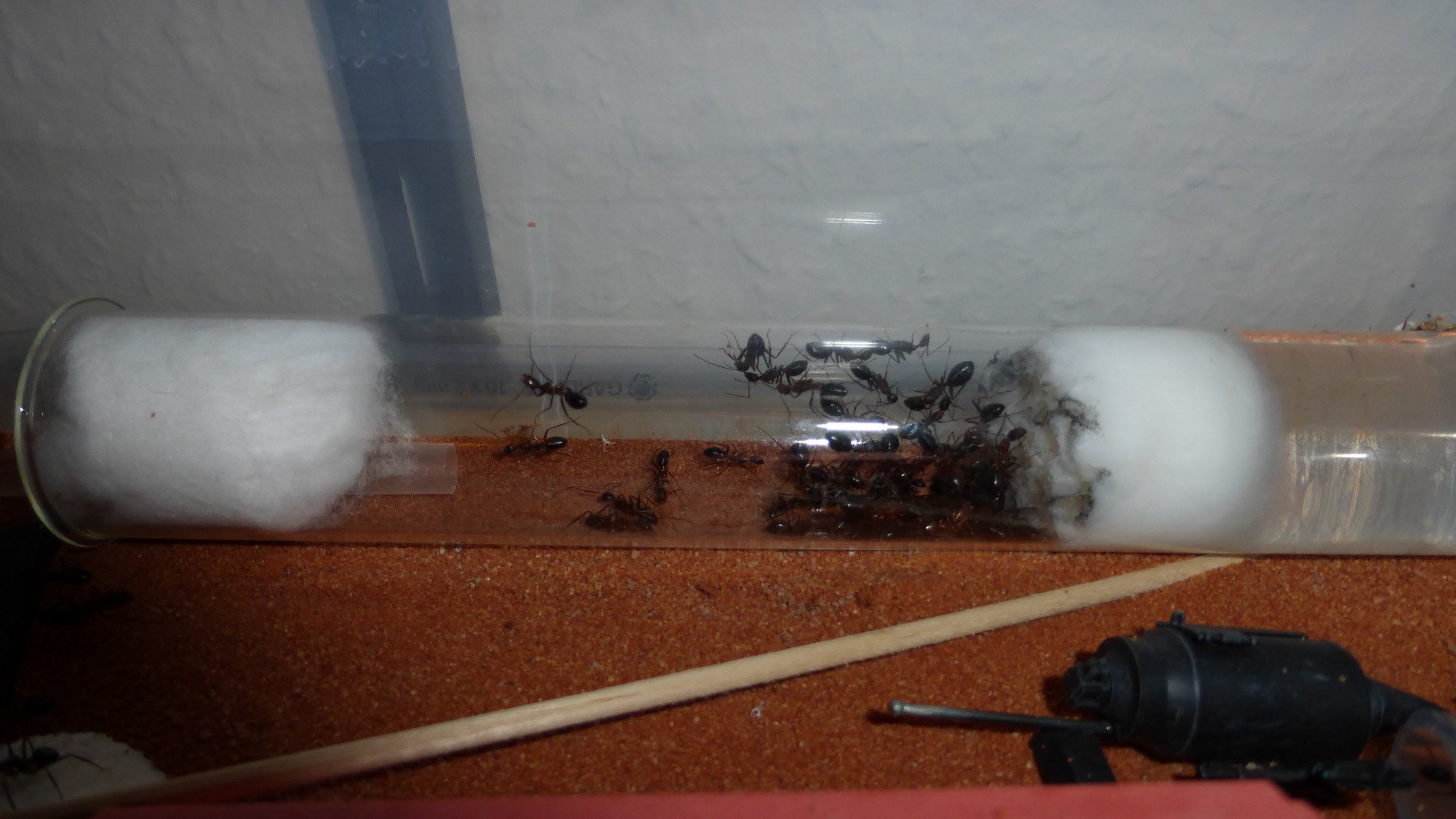 Nach einer interessante Diskussion ĂĽber den Zuckergehalt verschiedener FlĂĽssigkeiten auf Formiculture hab ich mal angefangen Traubenzucker und die Ahronsirupmischung zu geben und den Ameisen scheint das sehr zu gefallen.