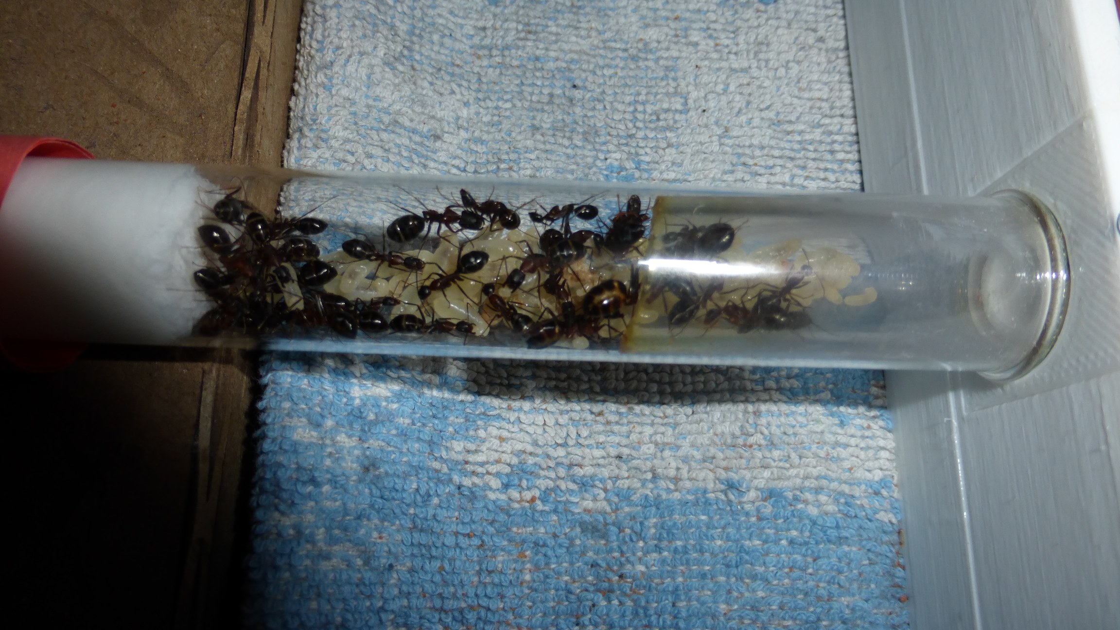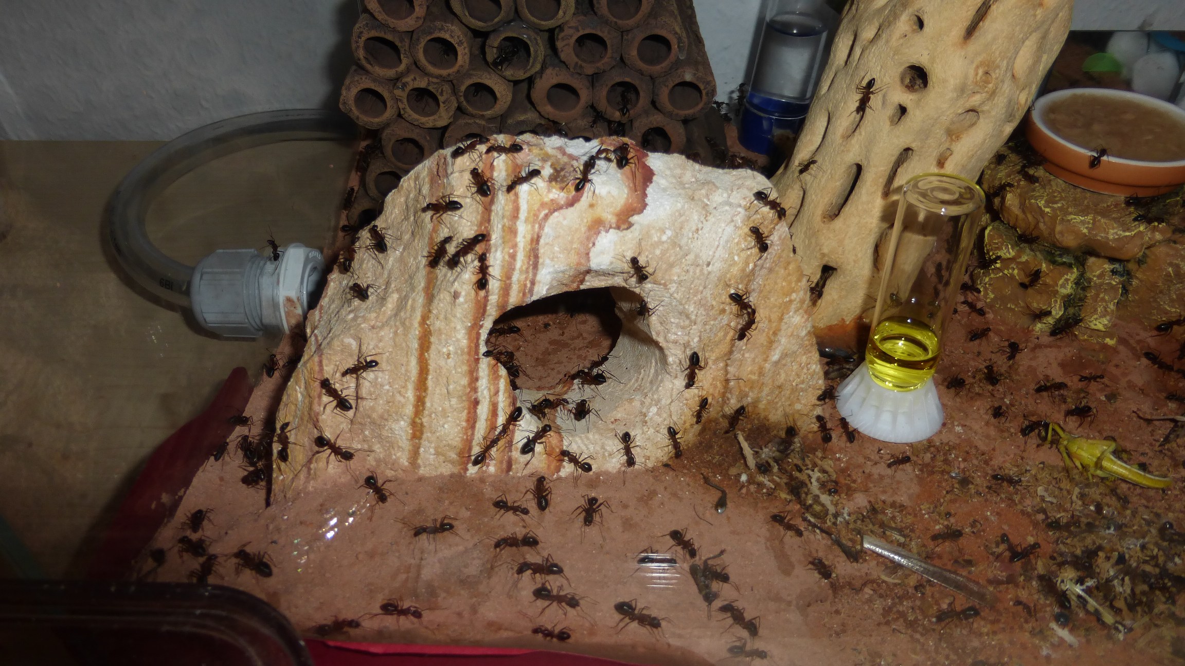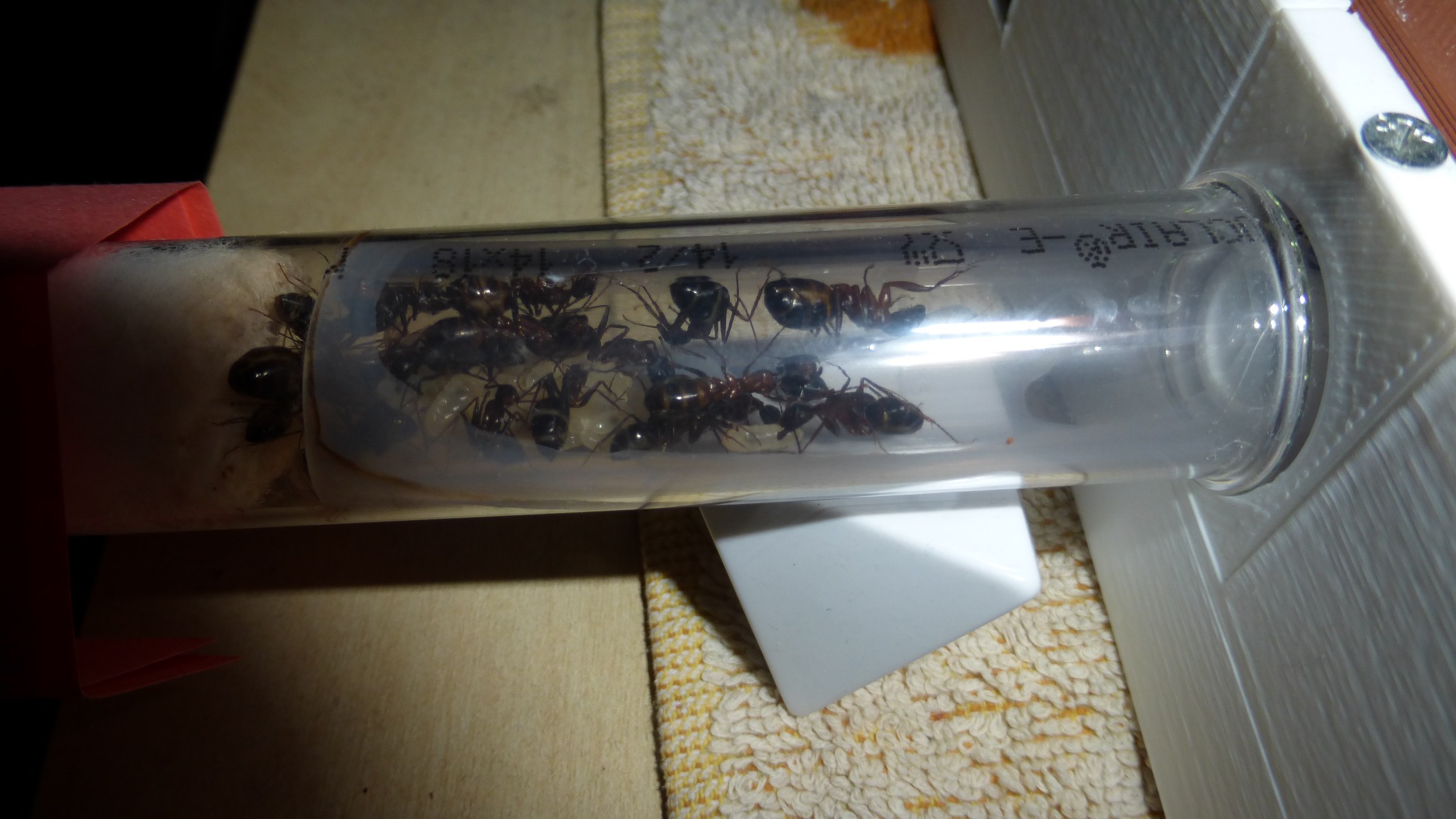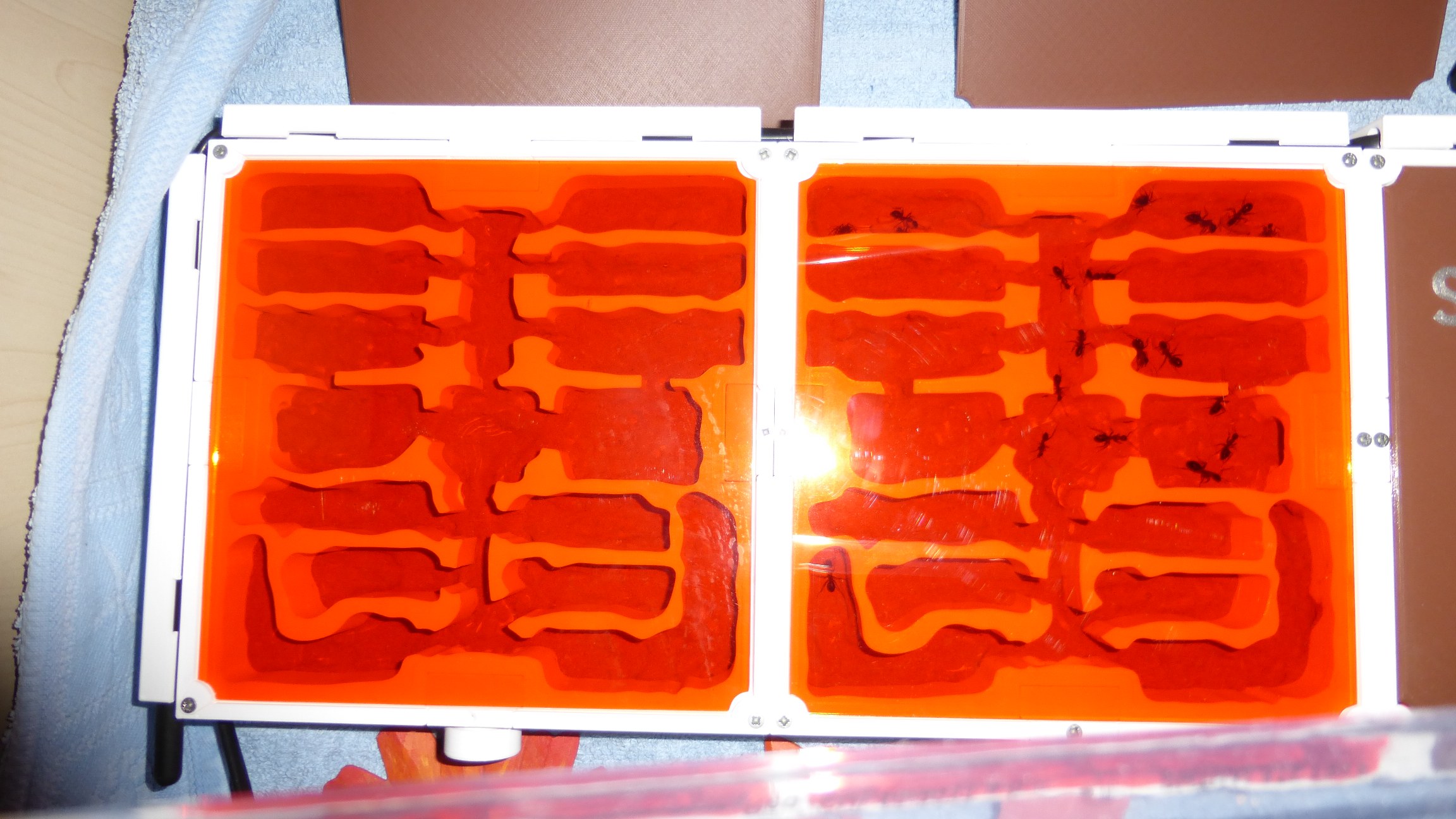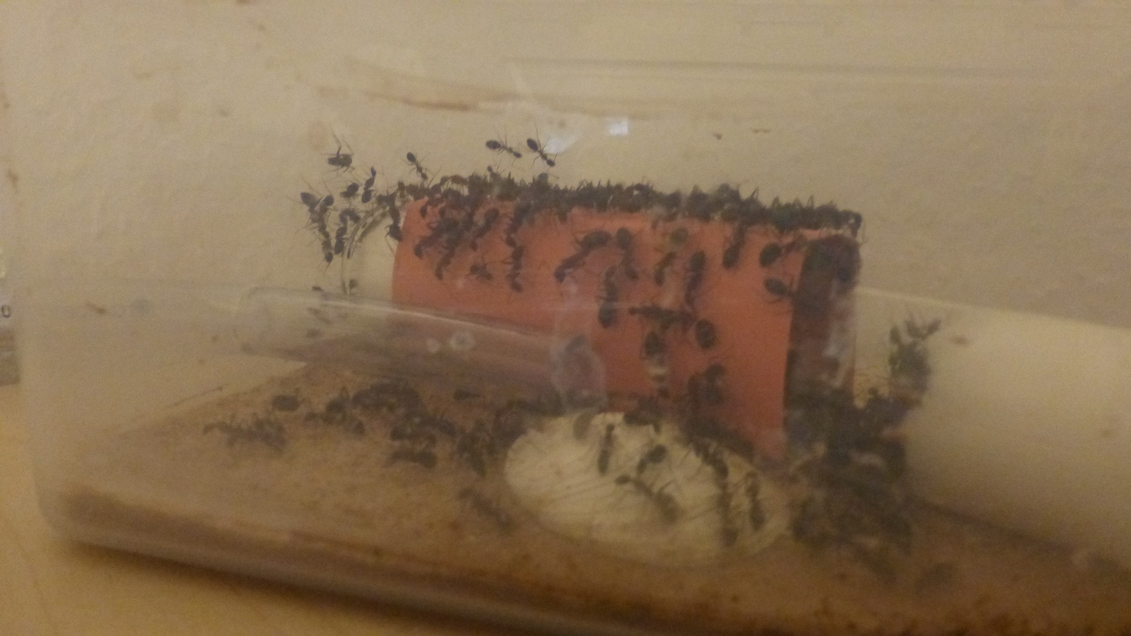 Nach einer interessante Diskussion ĂĽber den Zuckergehalt verschiedener FlĂĽssigkeiten auf Formiculture hab ich mal angefangen Traubenzucker und die Ahronsirupmischung zu geben und den Ameisen scheint das sehr zu gefallen.
