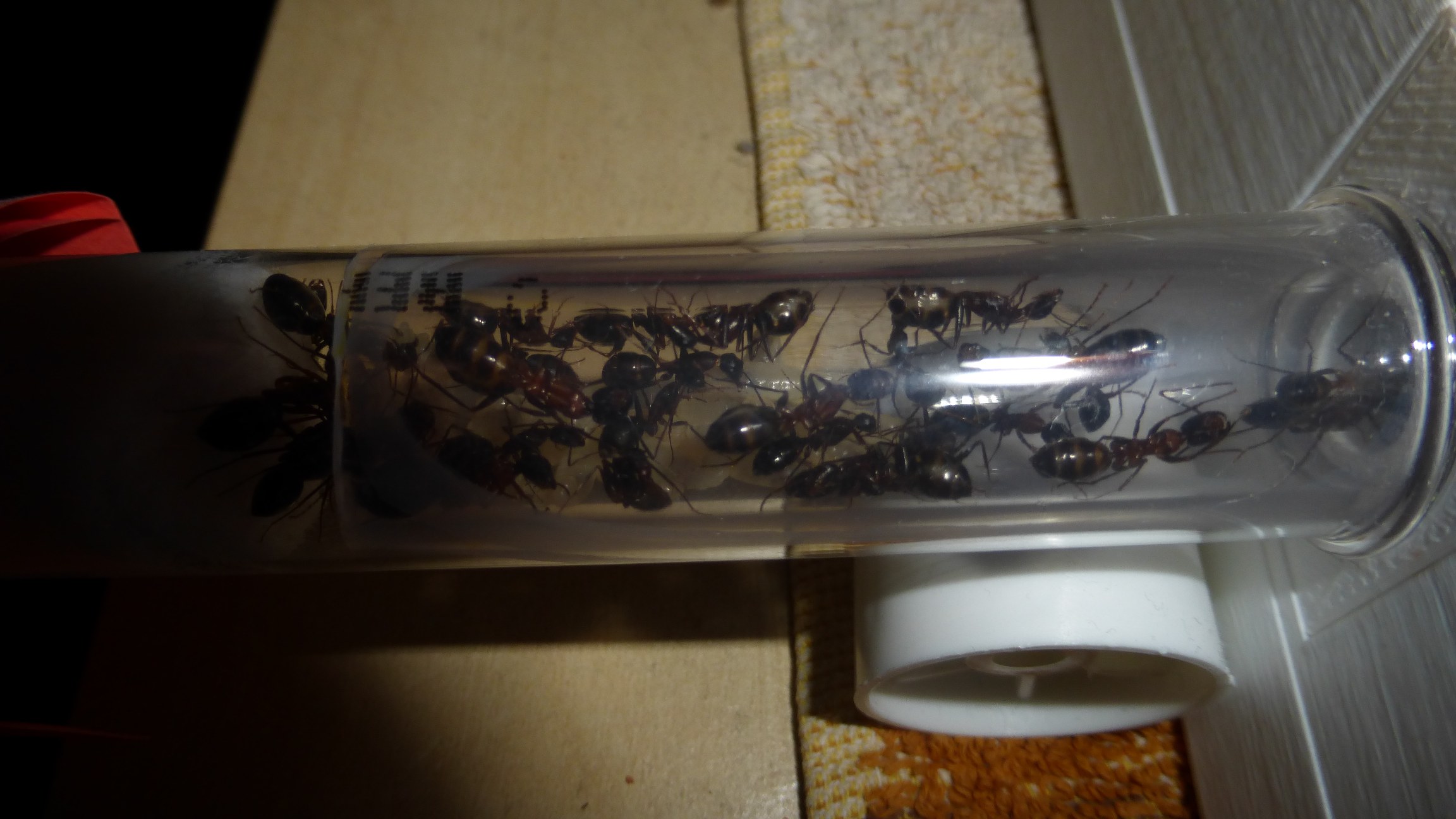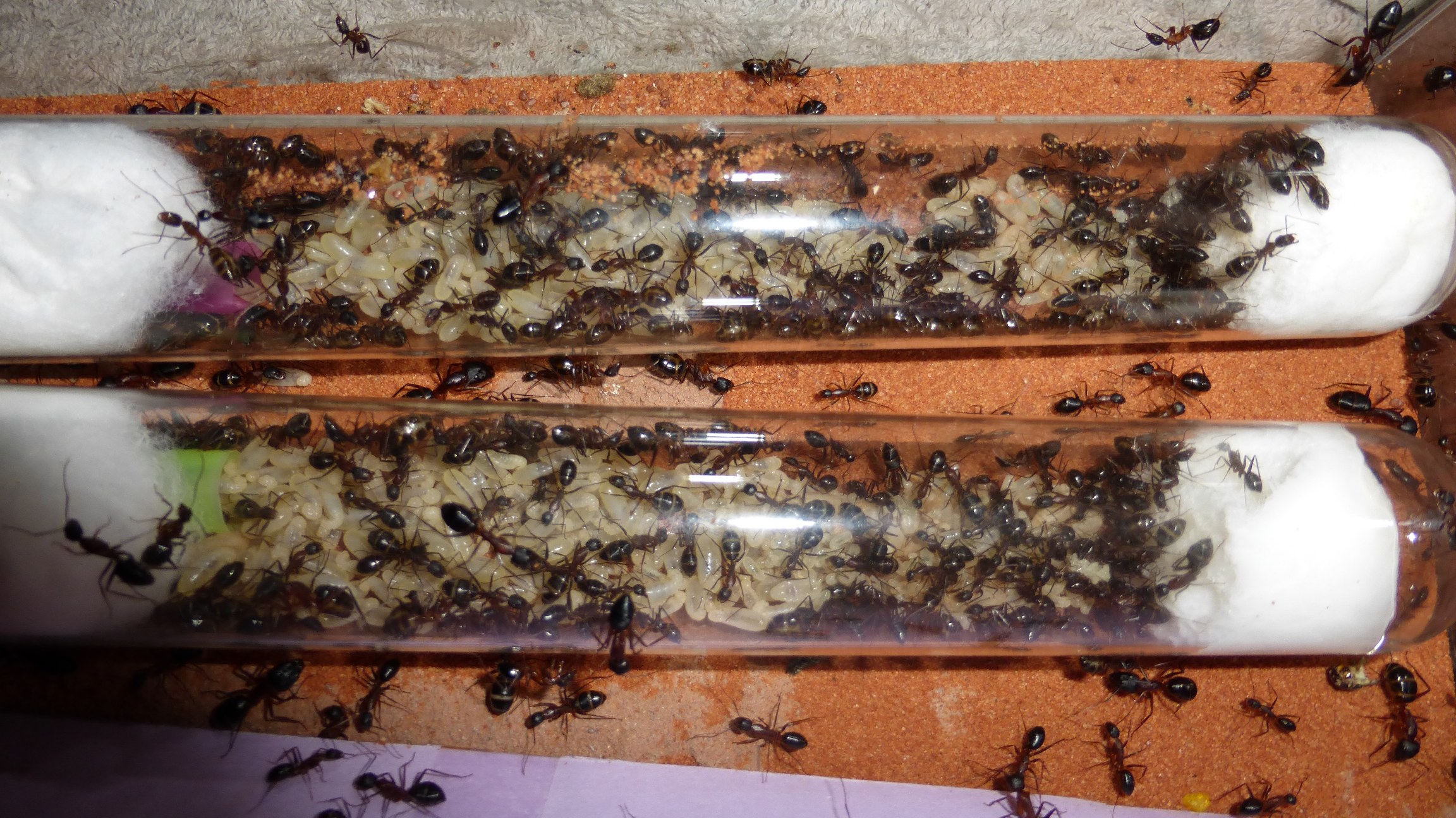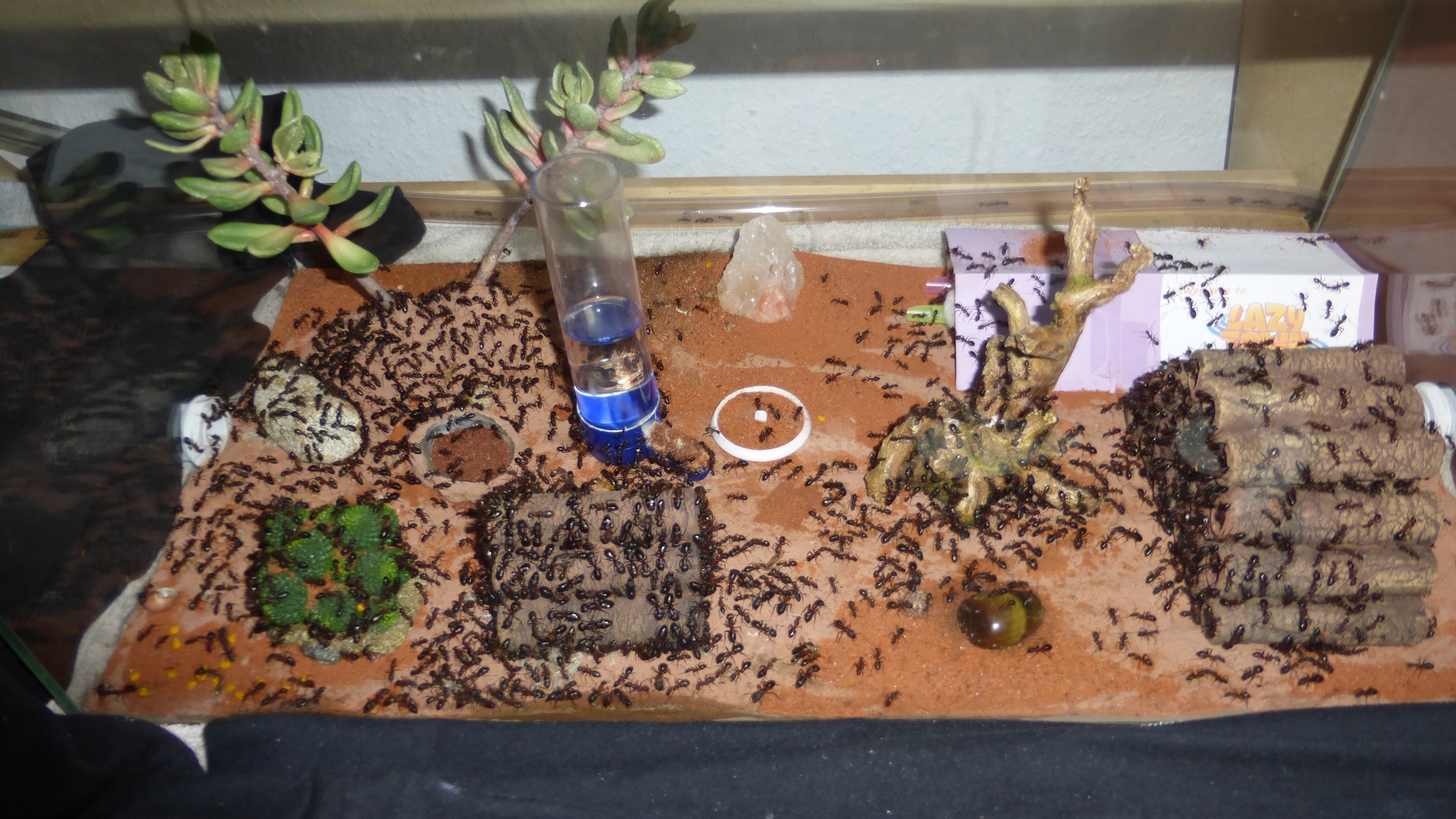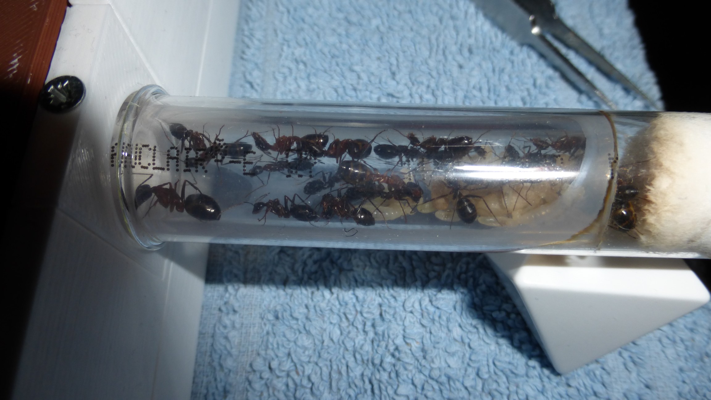 Nach einer interessante Diskussion ĂĽber den Zuckergehalt verschiedener FlĂĽssigkeiten auf Formiculture hab ich mal angefangen Traubenzucker und die Ahronsirupmischung zu geben und den Ameisen scheint das sehr zu gefallen.