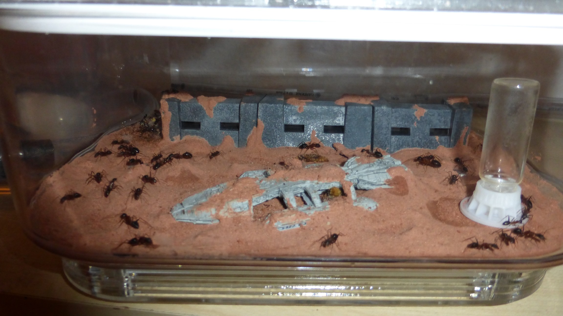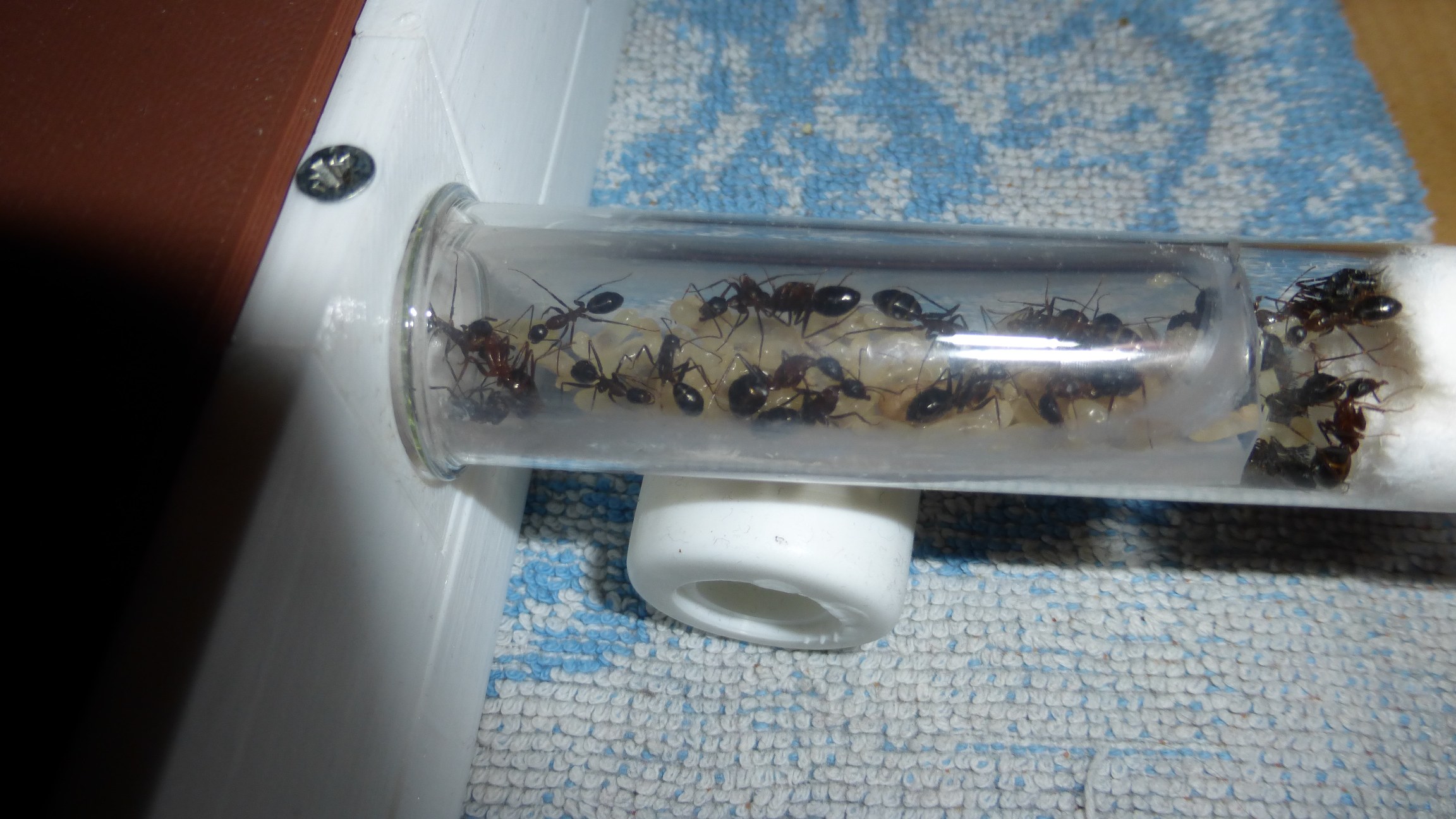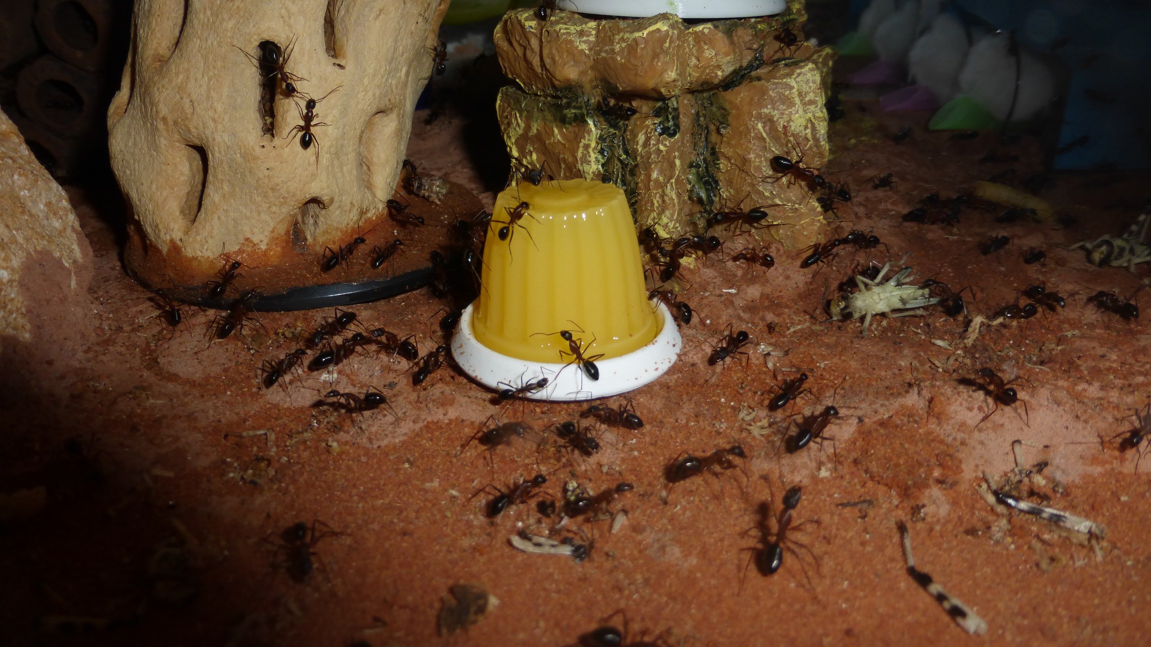 Hat ein paar Stunden gebraucht bis sie sich an die neuen Tränken gewöhnt hatten. Zuerst haben sie die Flüssigkeit nicht gefunden und angefangen Müll auf den Füßchen der Tränken abzuladen - hab dann einen Tropfen Sunburst in ein paar der Öffnungen gegen, damit die Ameisen merken, dass es da was Süßes zu trinken gibt und nach mehr suchen. Nachdem sie dann endlich verstanden hatten, dass da was leckeres drin ist, wurden dann auch der Müll wieder entfernt. Mittlerweile haben sie sich schon komplett an die neuen Tränken gewöhnt.