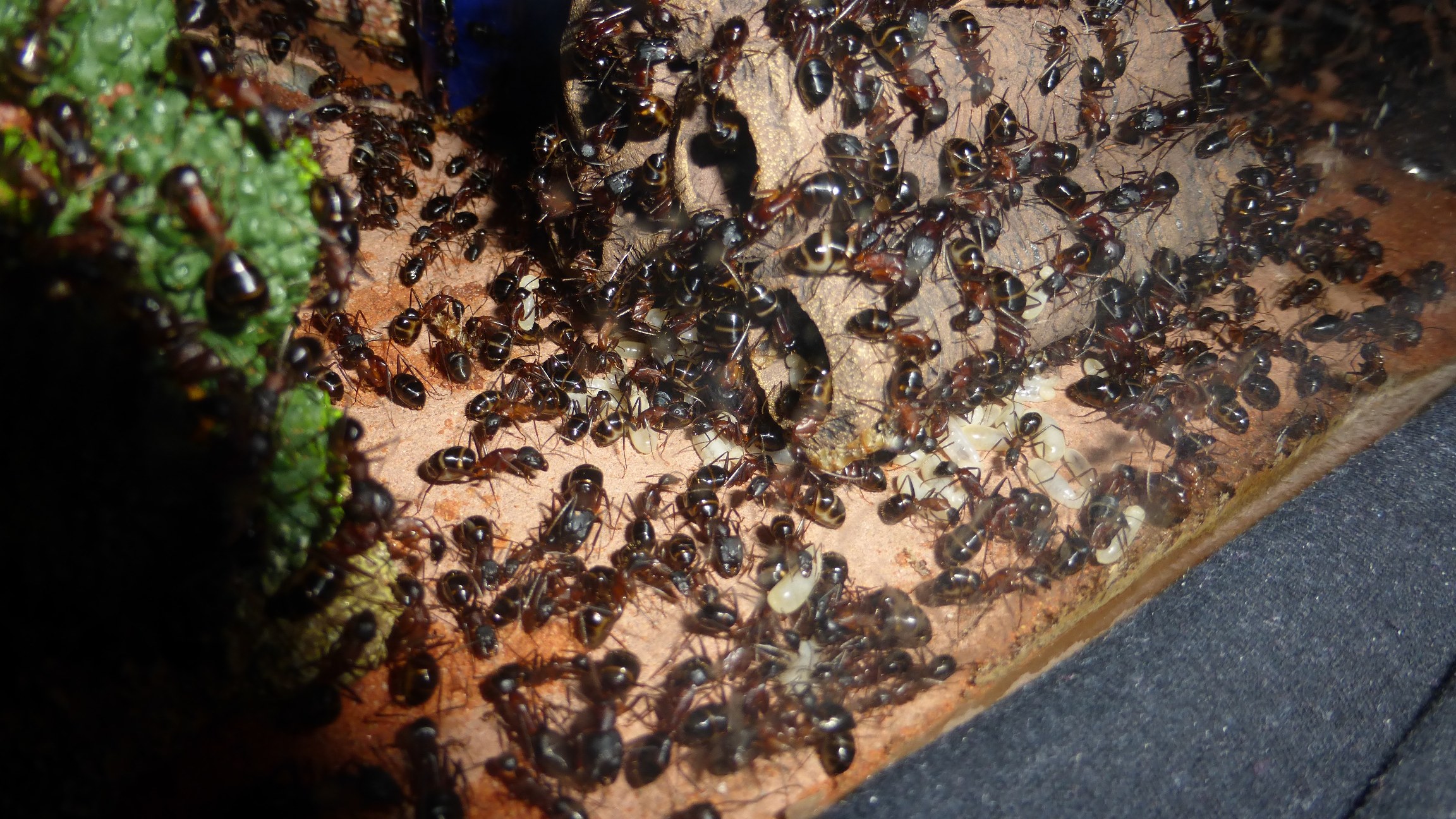 Den Ameisen scheinen die angefĂĽtterten Schaben (hab ein zweites Becken wo ich die frisch gekauften mittelgroĂźen Exemplare erstmal 2-3 Wochen mit vernĂĽftigem Futter versorg) auch wirklich zu schmecken.
