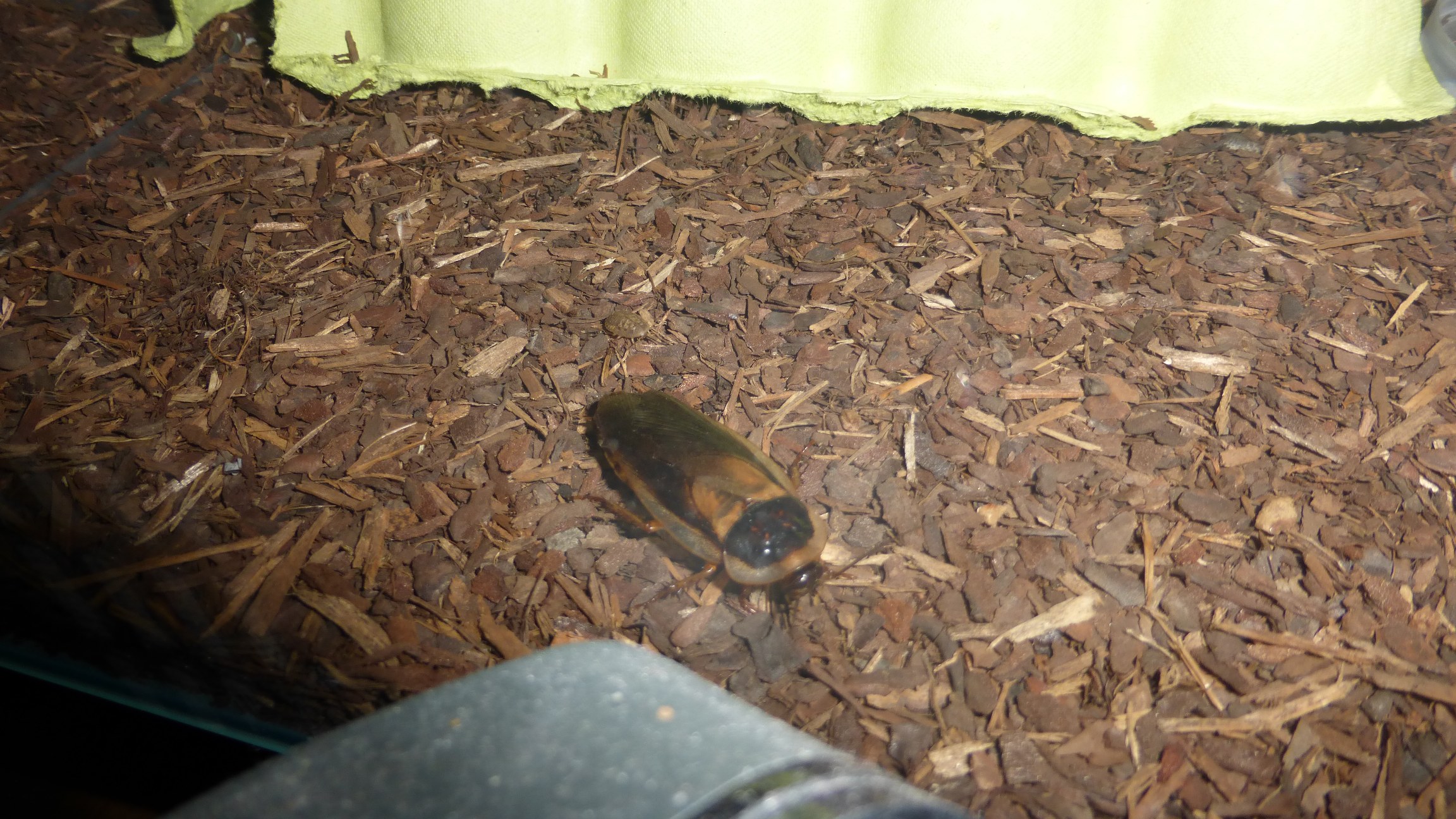 Die Schabenfarm macht langsam Fortschritte – es gibt erste Babies. Hier ist Papa Schabe mit einem seiner Ableger (die kleine Schabe direkt über dem Hinterende der Ausgewachsenen).