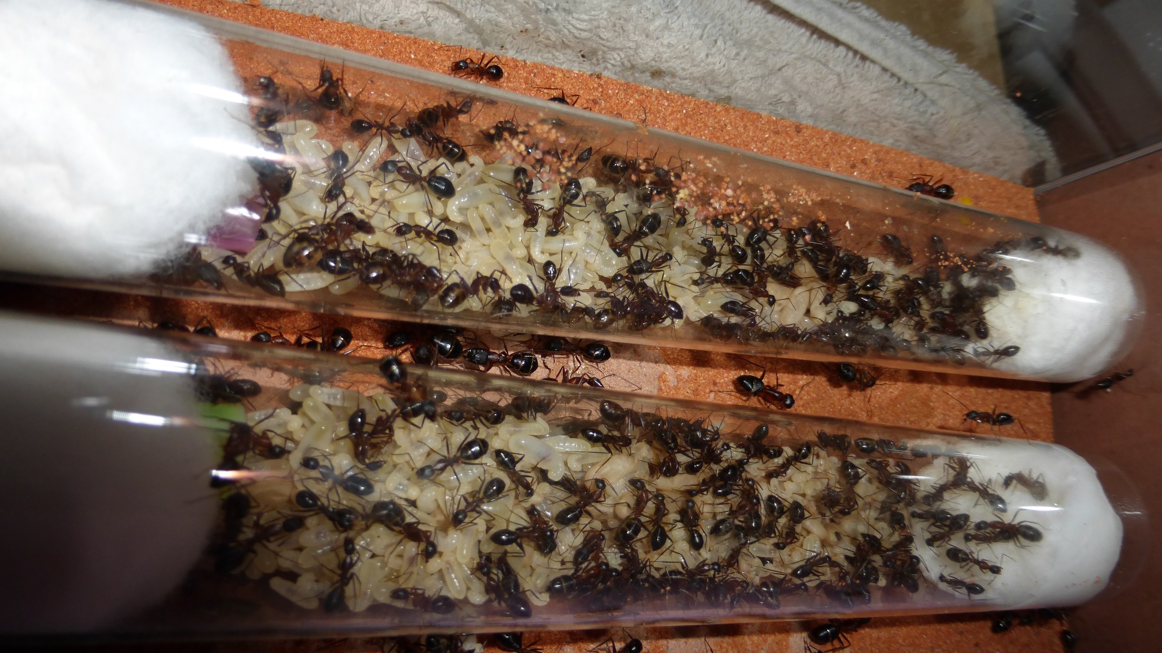 Nach einer interessante Diskussion ĂĽber den Zuckergehalt verschiedener FlĂĽssigkeiten auf Formiculture hab ich mal angefangen Traubenzucker und die Ahronsirupmischung zu geben und den Ameisen scheint das sehr zu gefallen.