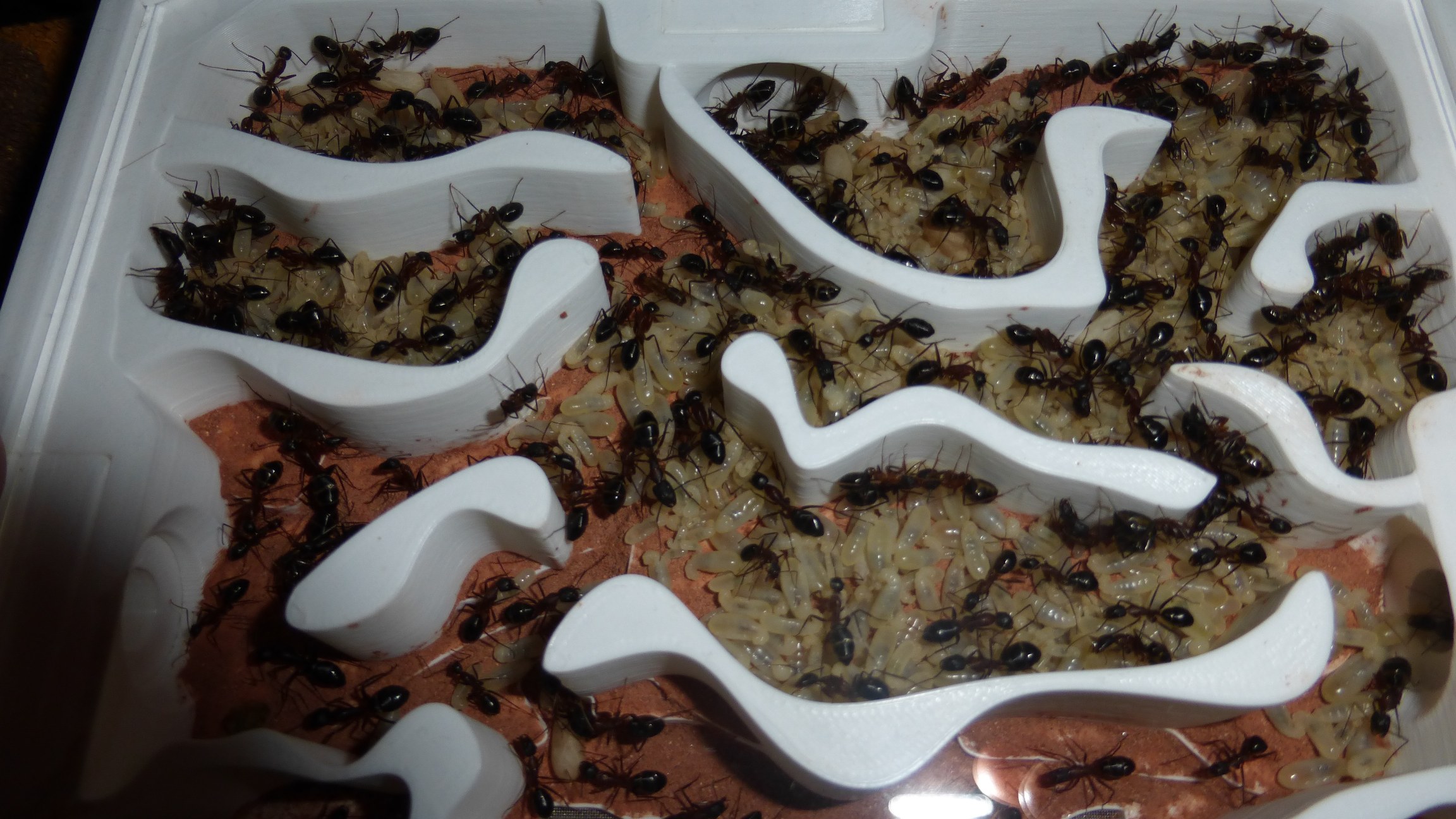 Hat ein paar Stunden gebraucht bis sie sich an die neuen Tränken gewöhnt hatten. Zuerst haben sie die Flüssigkeit nicht gefunden und angefangen Müll auf den Füßchen der Tränken abzuladen - hab dann einen Tropfen Sunburst in ein paar der Öffnungen gegen, damit die Ameisen merken, dass es da was Süßes zu trinken gibt und nach mehr suchen. Nachdem sie dann endlich verstanden hatten, dass da was leckeres drin ist, wurden dann auch der Müll wieder entfernt. Mittlerweile haben sie sich schon komplett an die neuen Tränken gewöhnt.