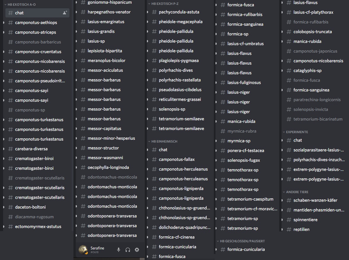 Serafine, du schreibst, dass viele der User, die nicht mehr aktiv hier im Ameisenforum sind, auf Discord unterwegs sind. WĂ€re es nicht eine gute Idee diese User zu fragen, was genau sie an Discord einladender finden? Abgesehen von den zahlreichen persönlichen Differenzen, die es in unserer Gruppe der Ameisenhalter ja leider offenbar ĂŒberdurchschnittlich hĂ€ufig gibt.