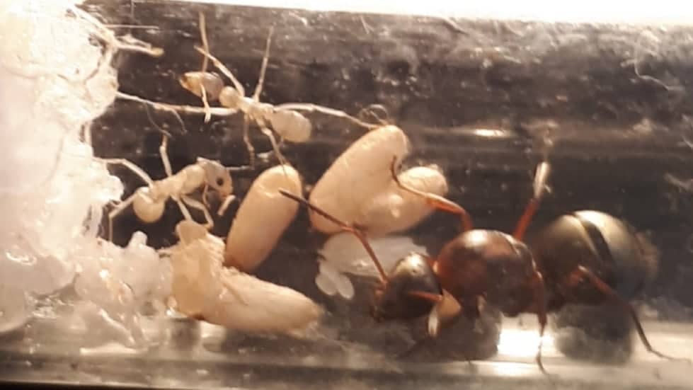 Trophallaxis, sind aber auch zu erkennen. Das finde ich jedes Mal aufs Neue putzig anzusehen!
