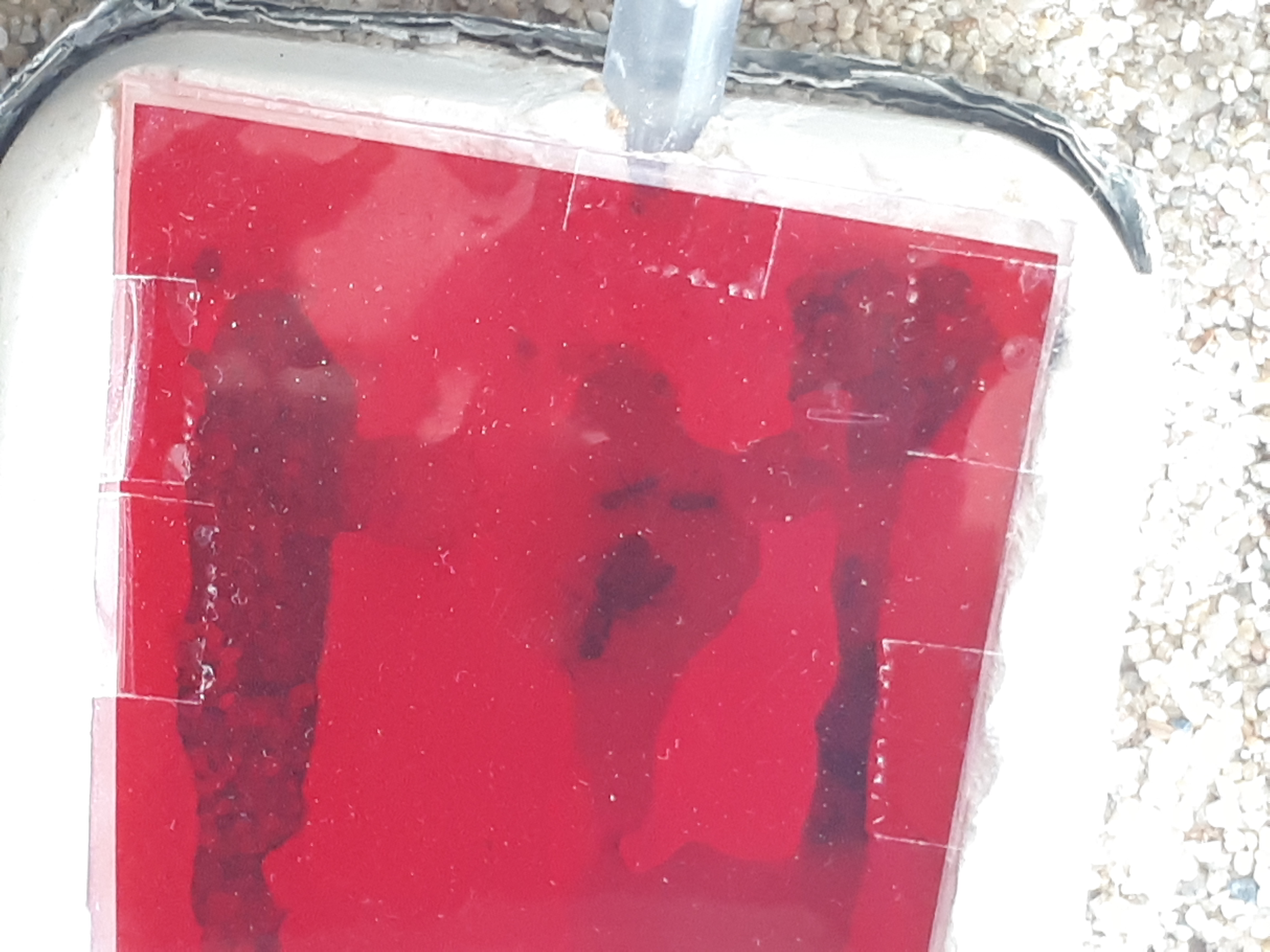 2. ich habe keine gute Einsicht, denn die Farbfilterfolie filtert nicht nur das Licht, sie streut es auch ein wenig. Das hat zur Folge, dass man die Ameisen nur verschwommen sieht und aufgrund des wohl zu geringen Kontrastes zwischen hellgrauem Gips und heller